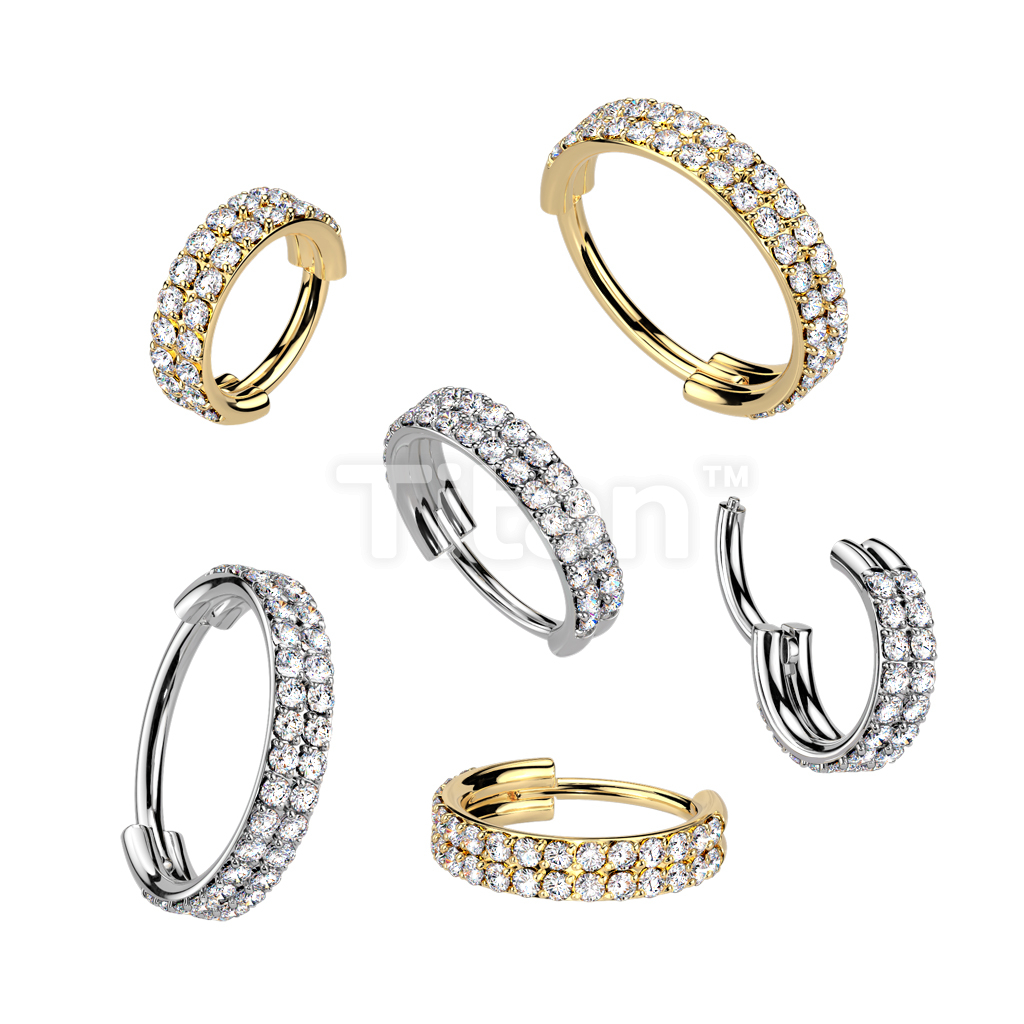 Titanium 18g & 20ga Hinged Segment Hoop Ring With Double Lined Outward Facing CZs