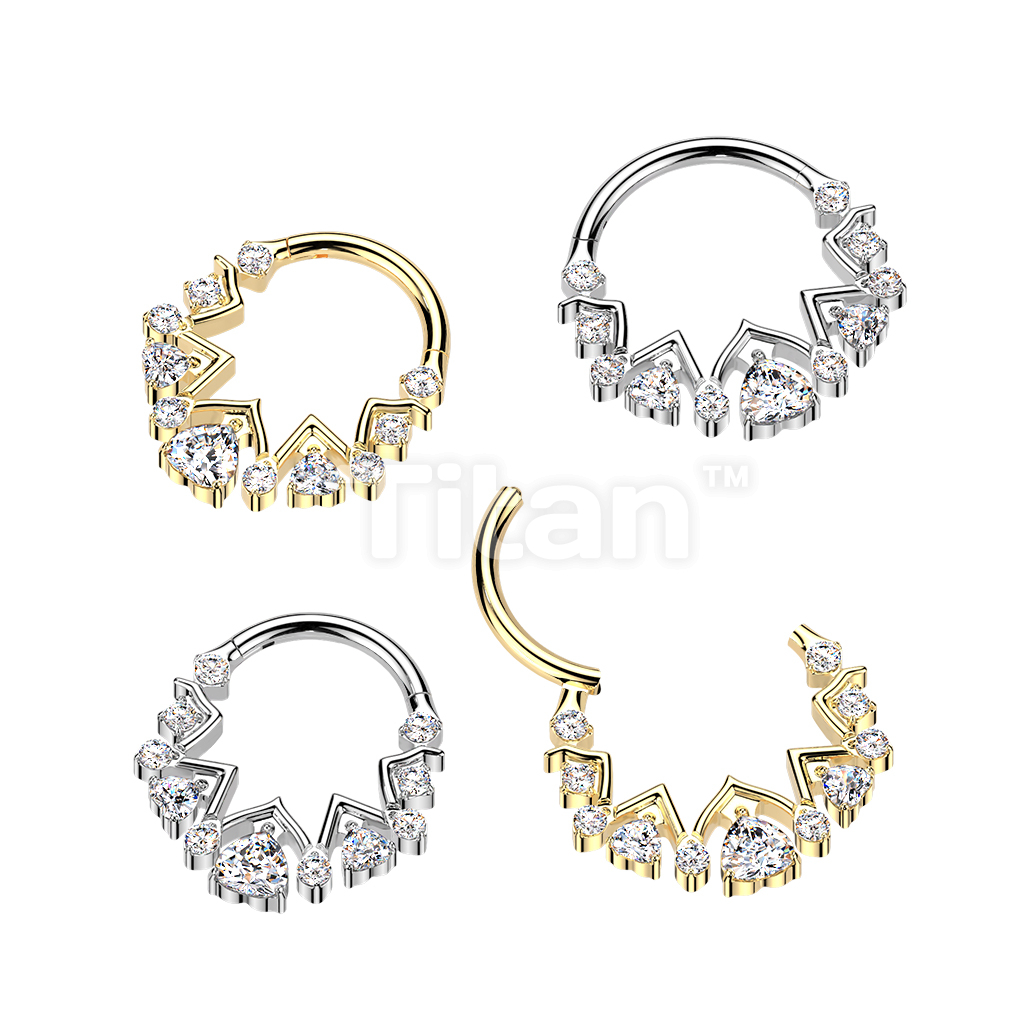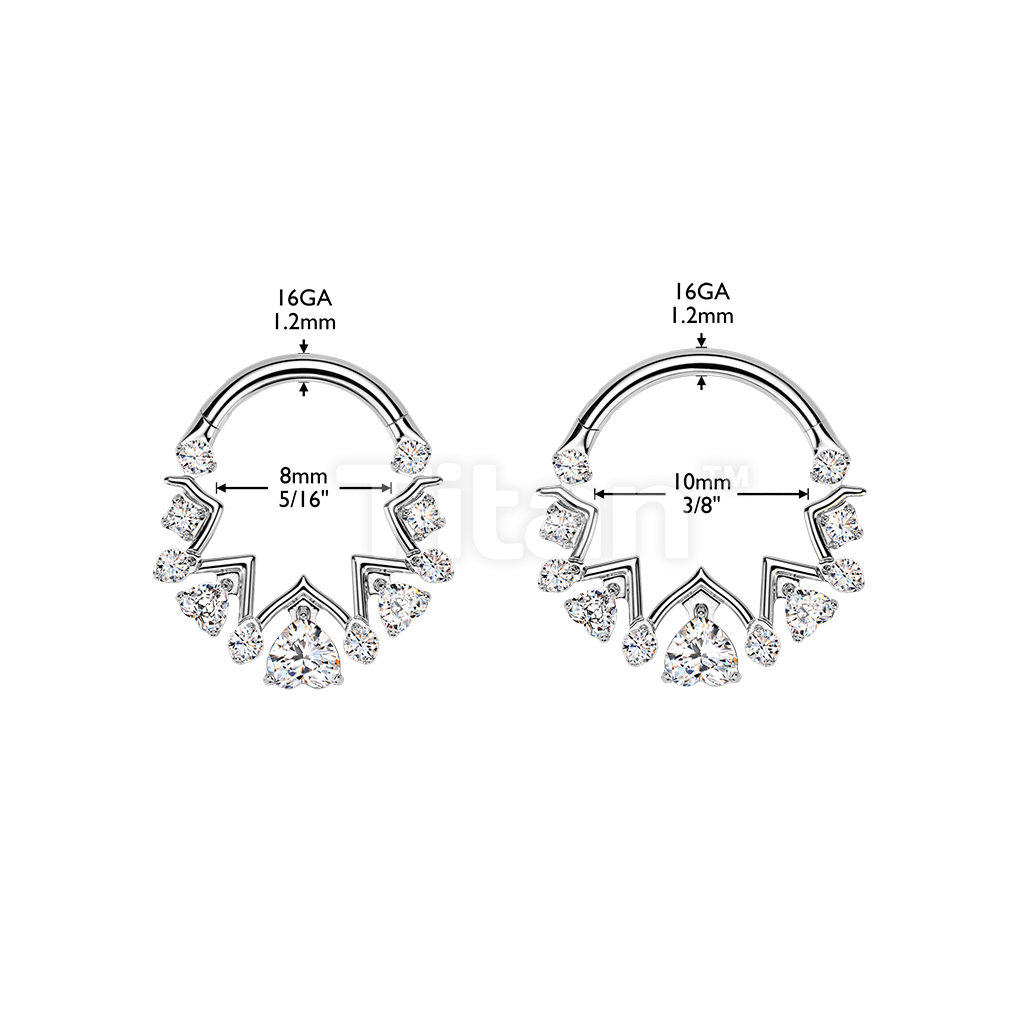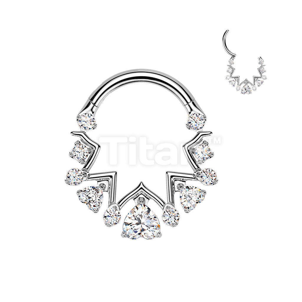 Titanium Hinged Zigzag Segment Hoop Ring With Upside Down Heart and Round CZ