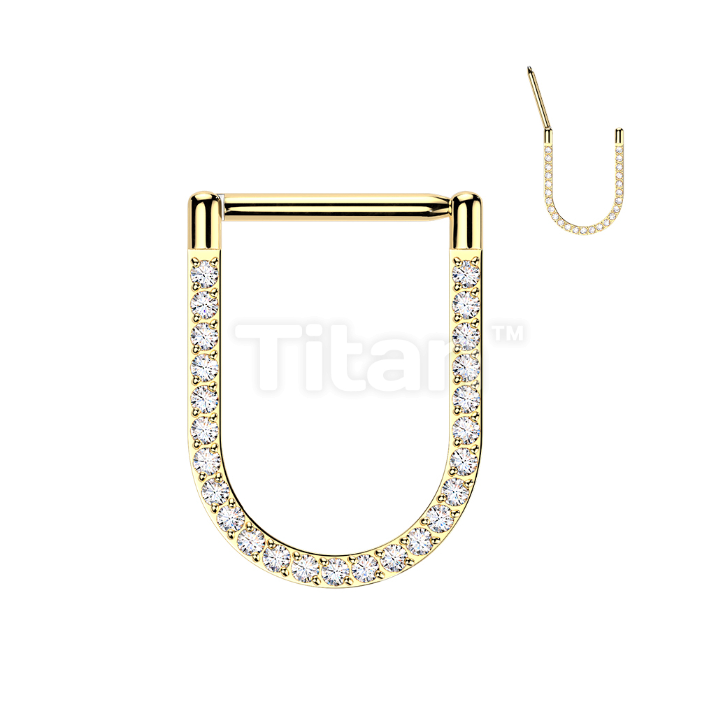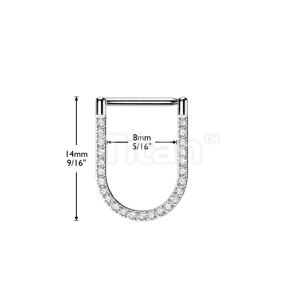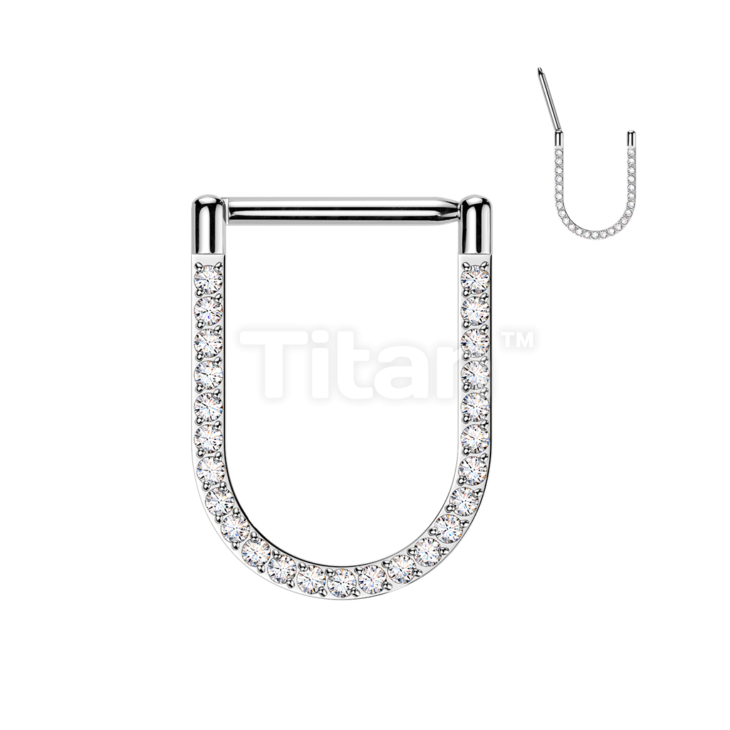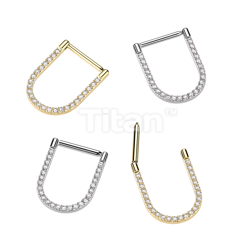 Titanium Hinged Pave CNC Set CZ U-Shape Segment Hoop Ring With Straight Bar
