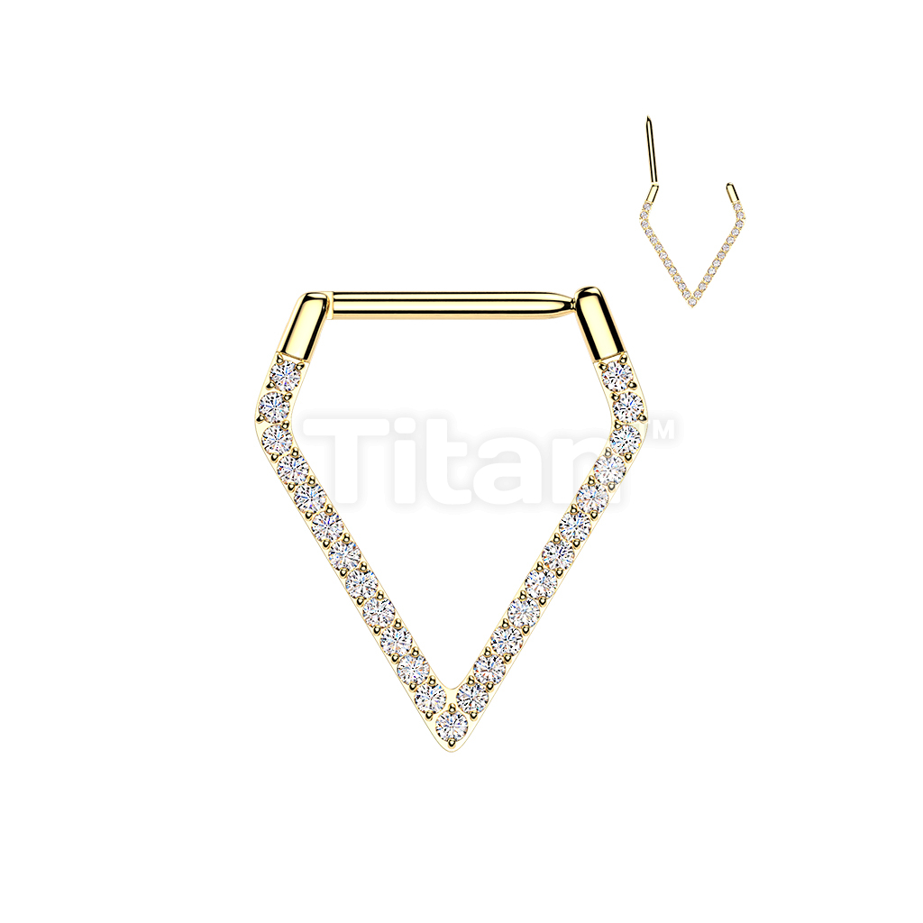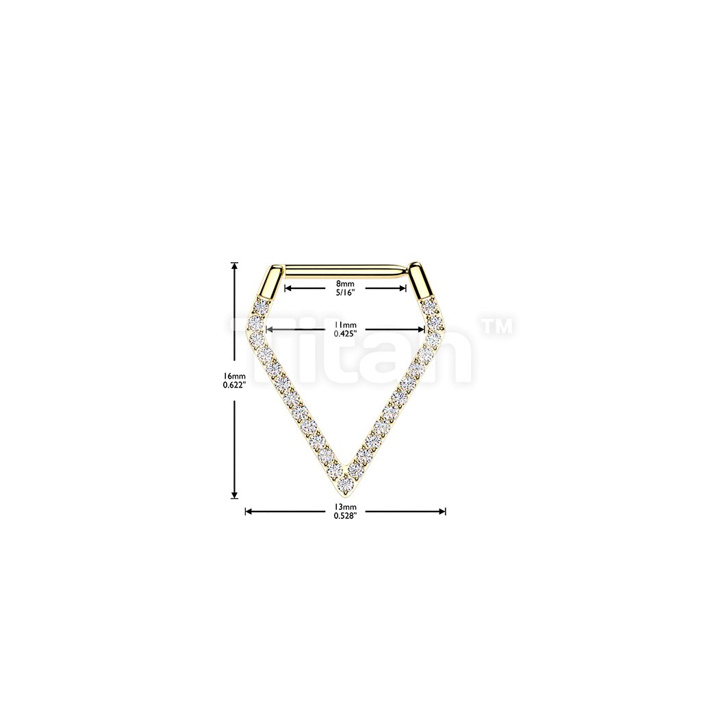 Titanium Hinged Pave CNC Set CZ Triangle Segment Hoop Ring With Straight Bar