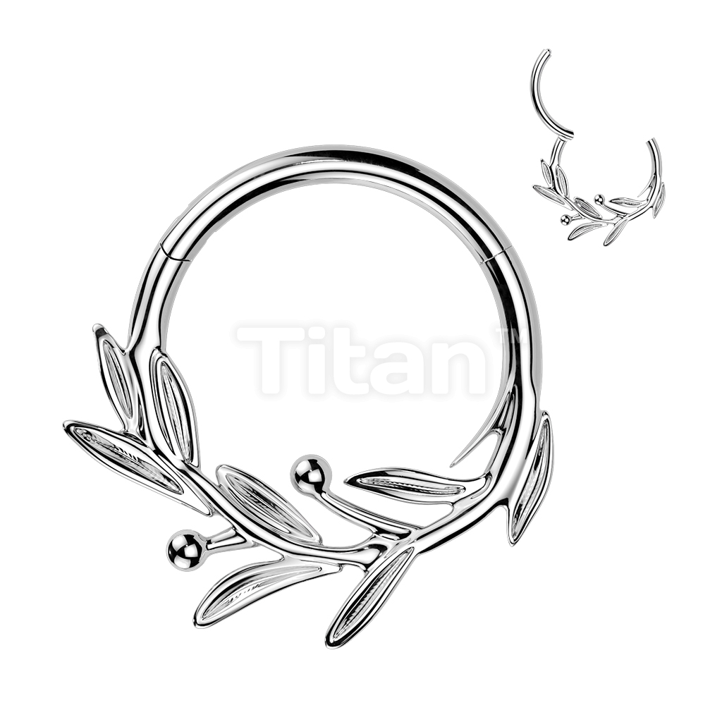 Titanium Hinged Olive Leaf Branch Segment Hoop Ring