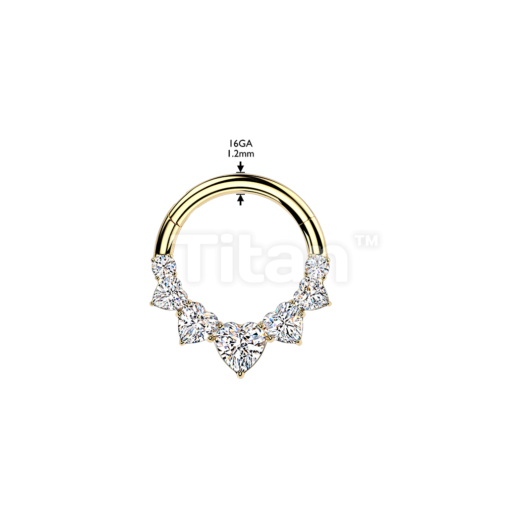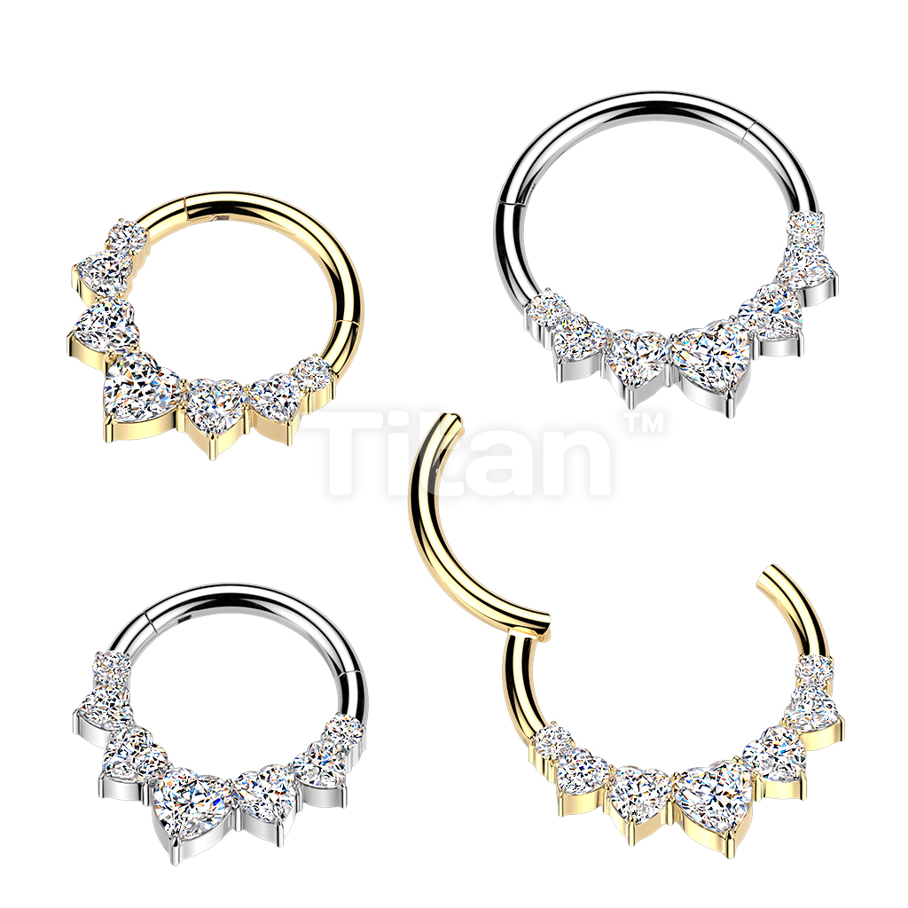 Titanium Hinged 5 Heart CZ Segment Hoop Ring With Round CZ Ends