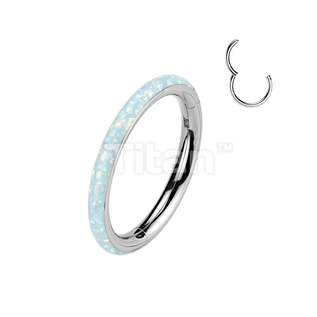 Titanium Hinged Outward Facing Opal Set Segment Hoop Ring for Nose, Ear and More