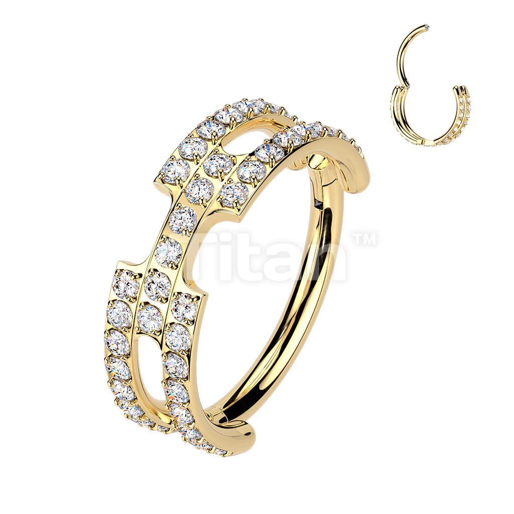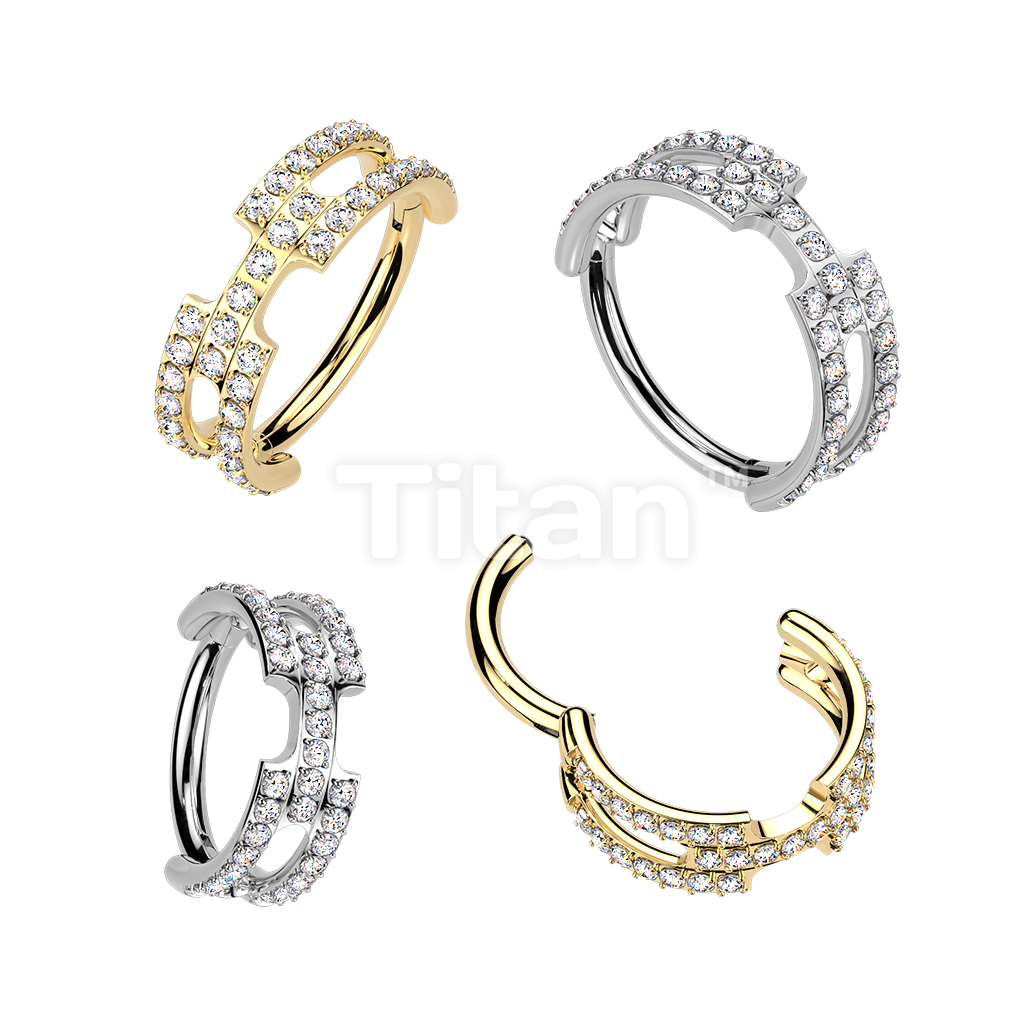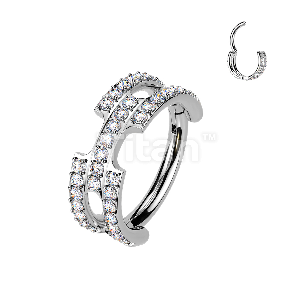 Titanium Hinged Chain Link Segment Hoop Ring With Pave CNC Set CZ