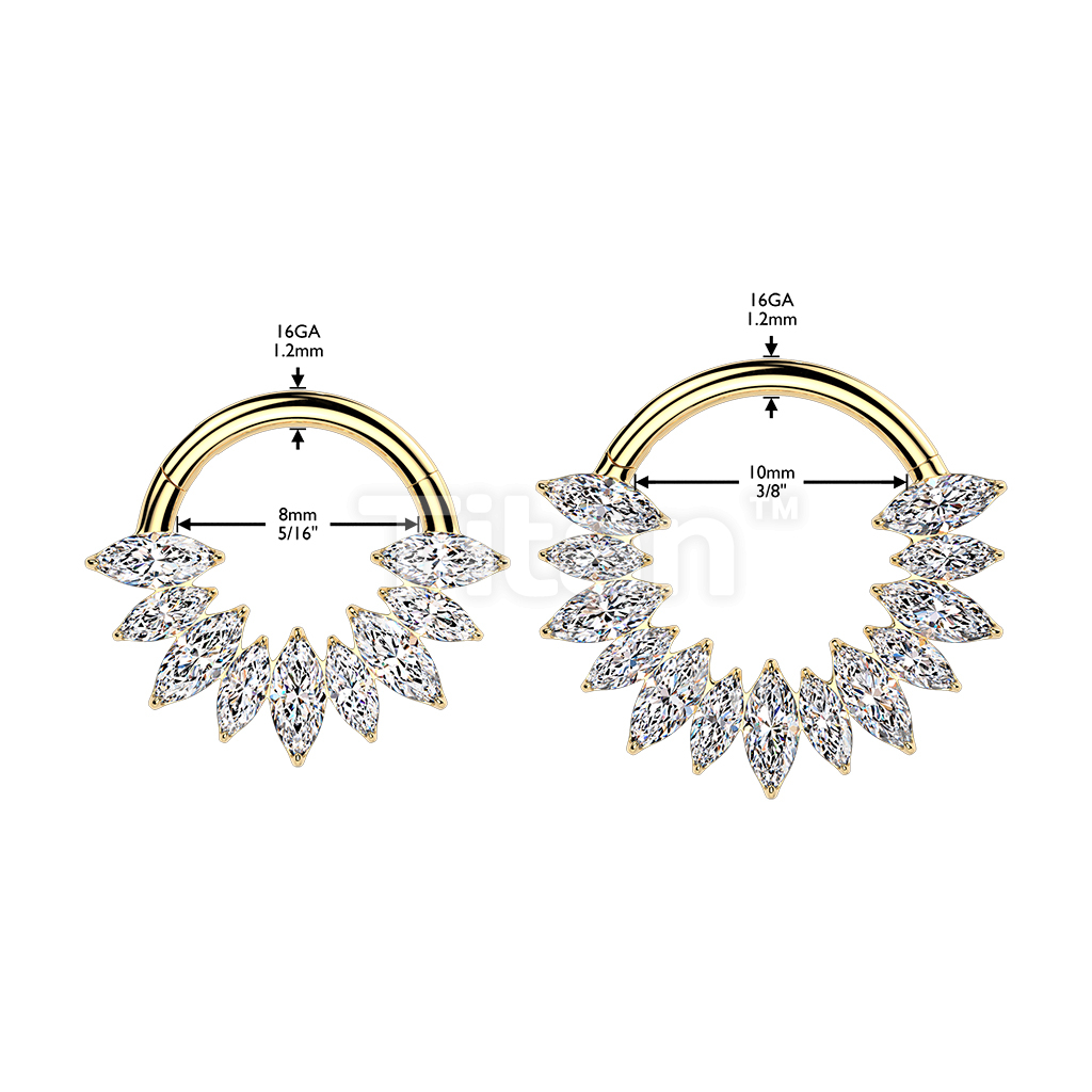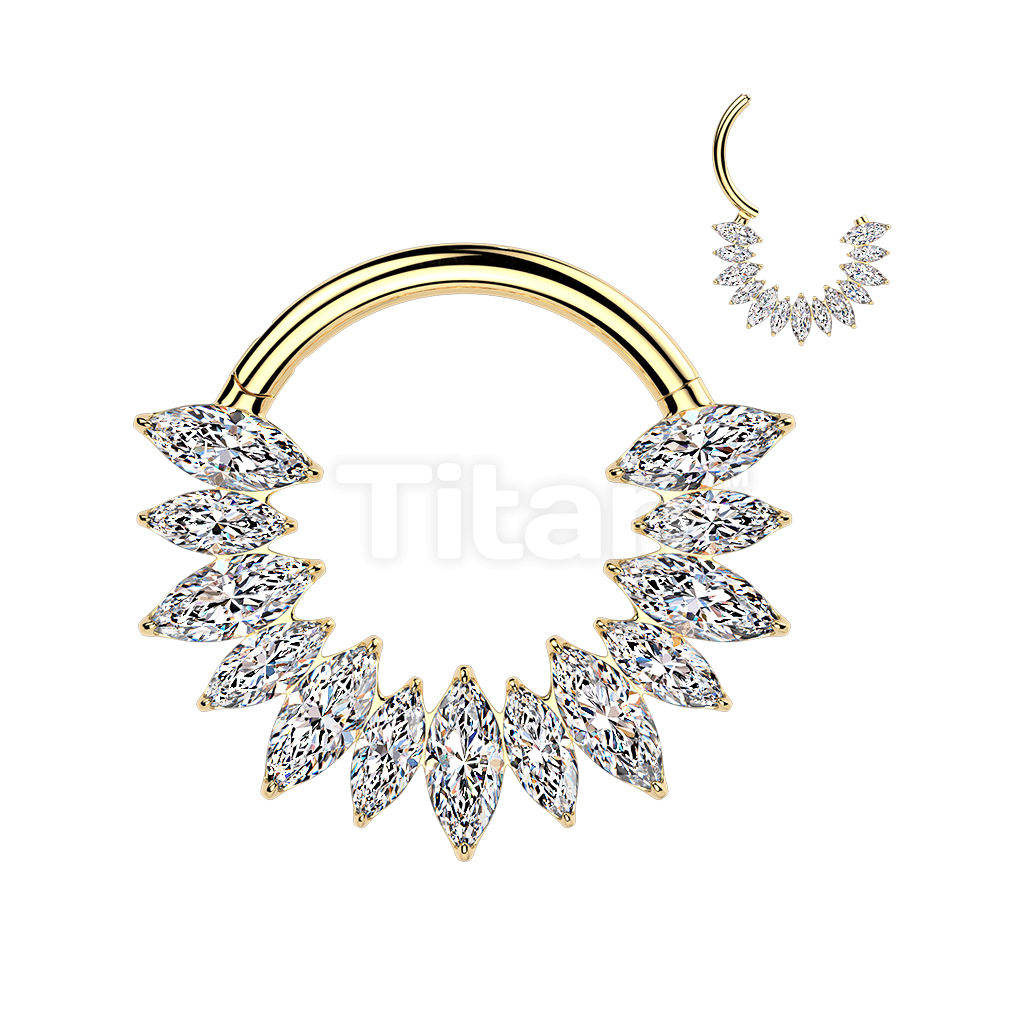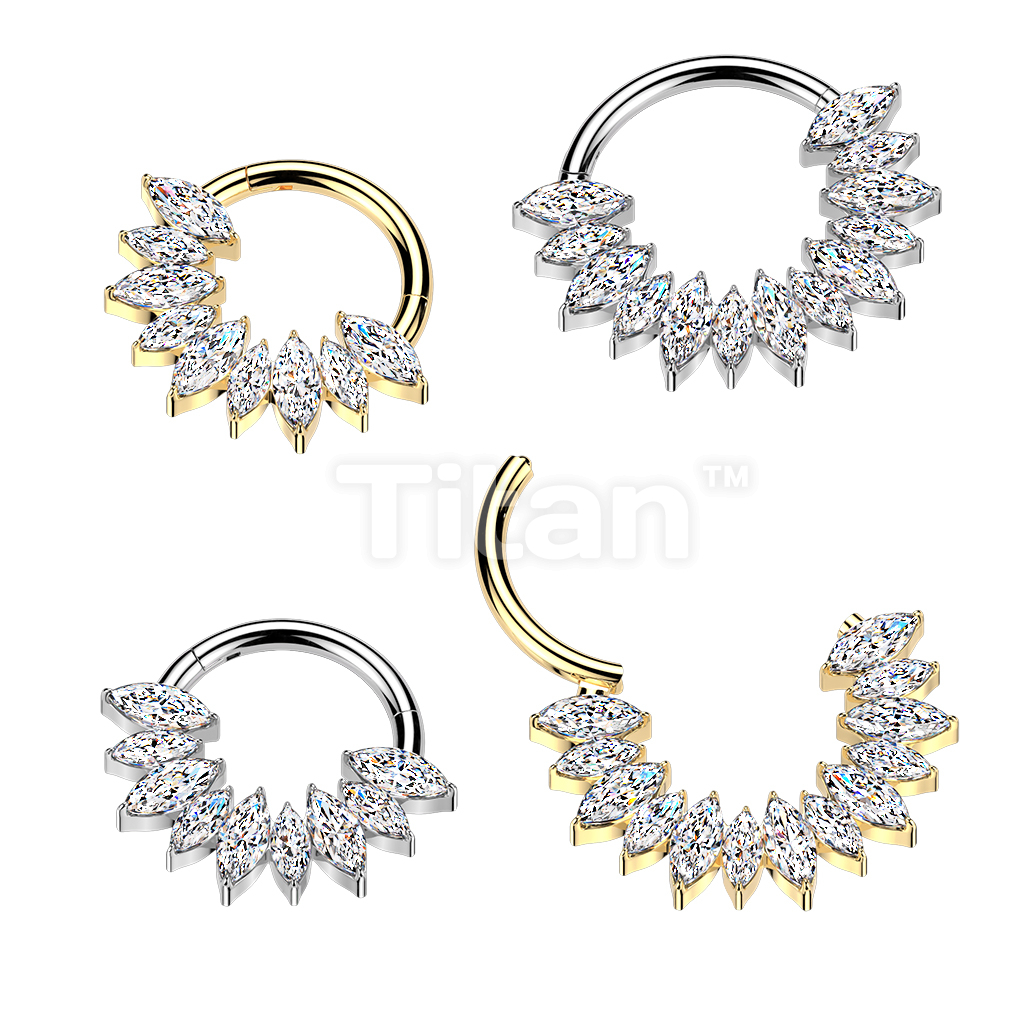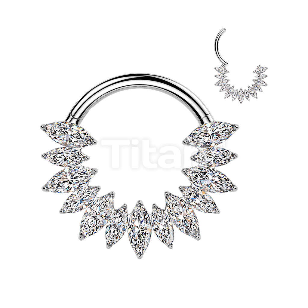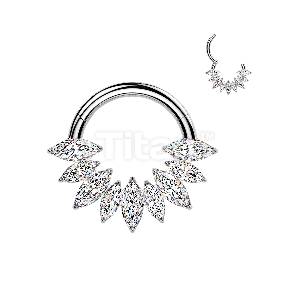 Titanium Hinged Marquise CZ Fan Segment Hoop Ring
