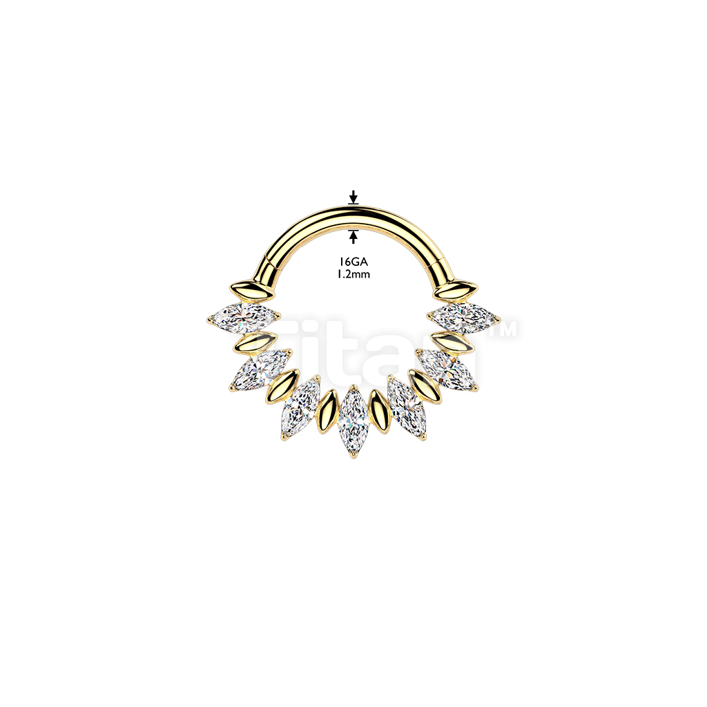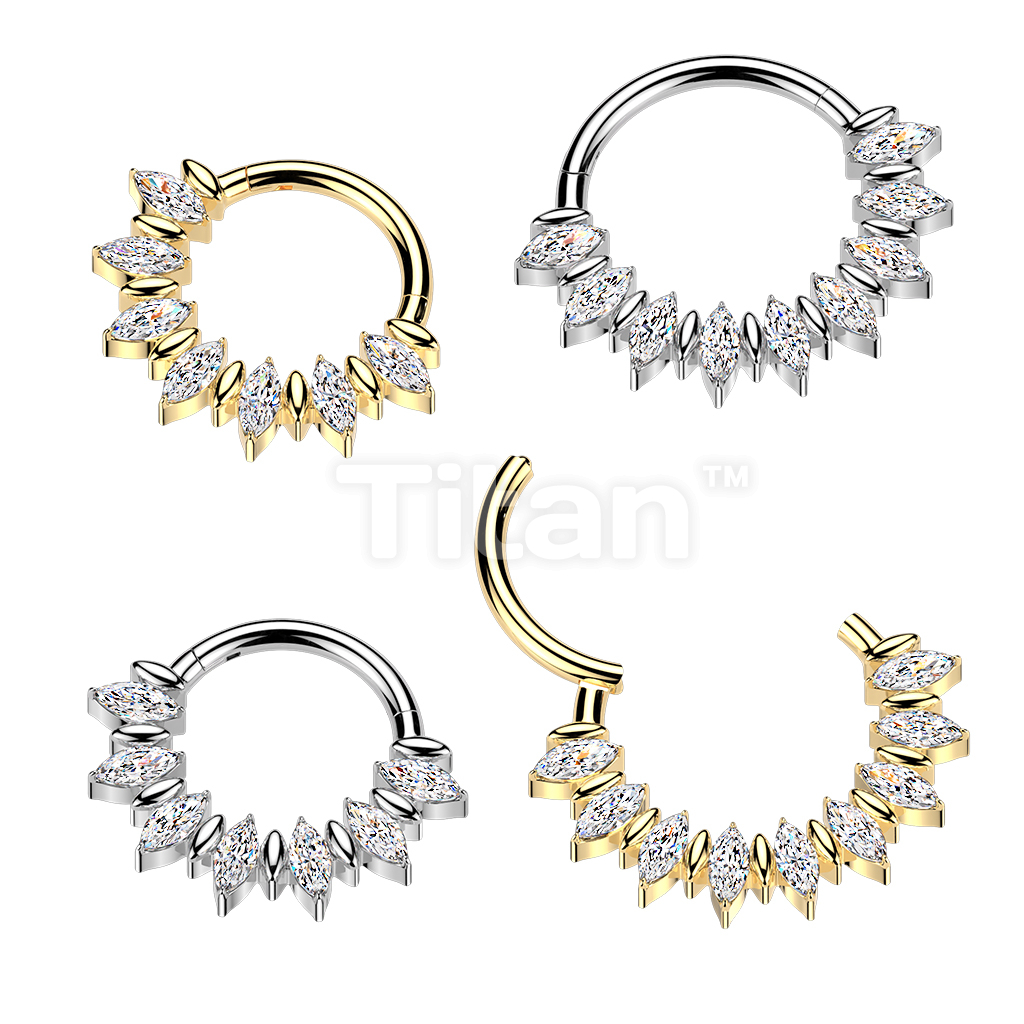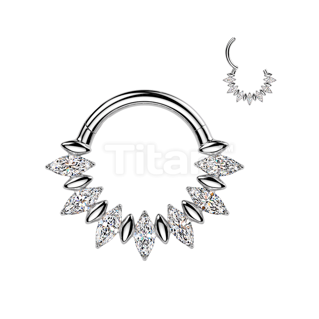 Titanium Hinged Segment Hoop Ring With Marquise CZ Fan