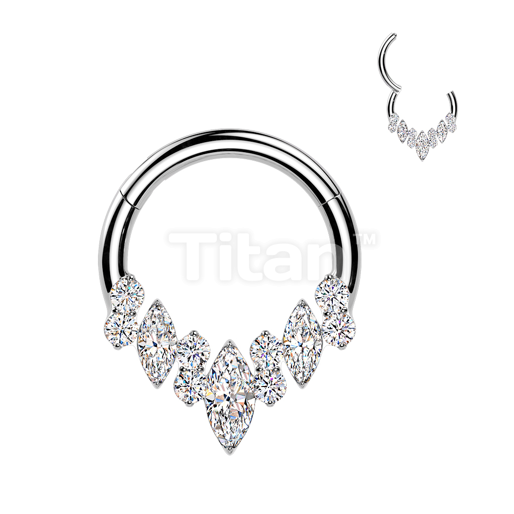 Titanium Mixed CZ Fan Hinged Clicker Segment Hoop Ring