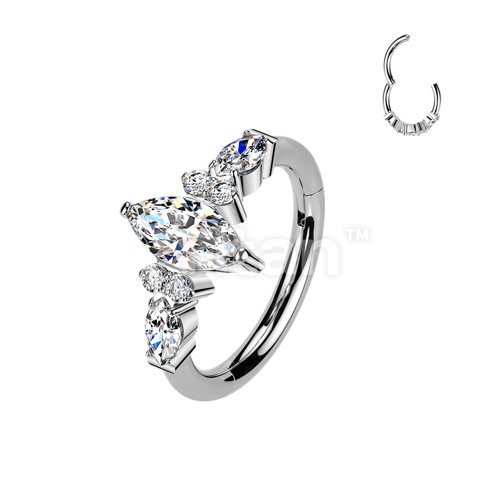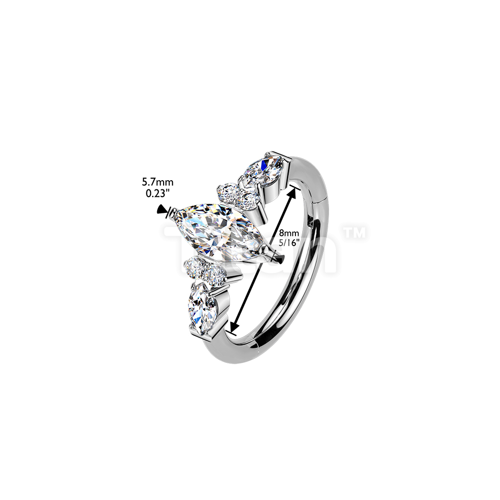 Titanium Hinged Segment Hoop Ring With Outward Facing Marquise CZ Center and Sides