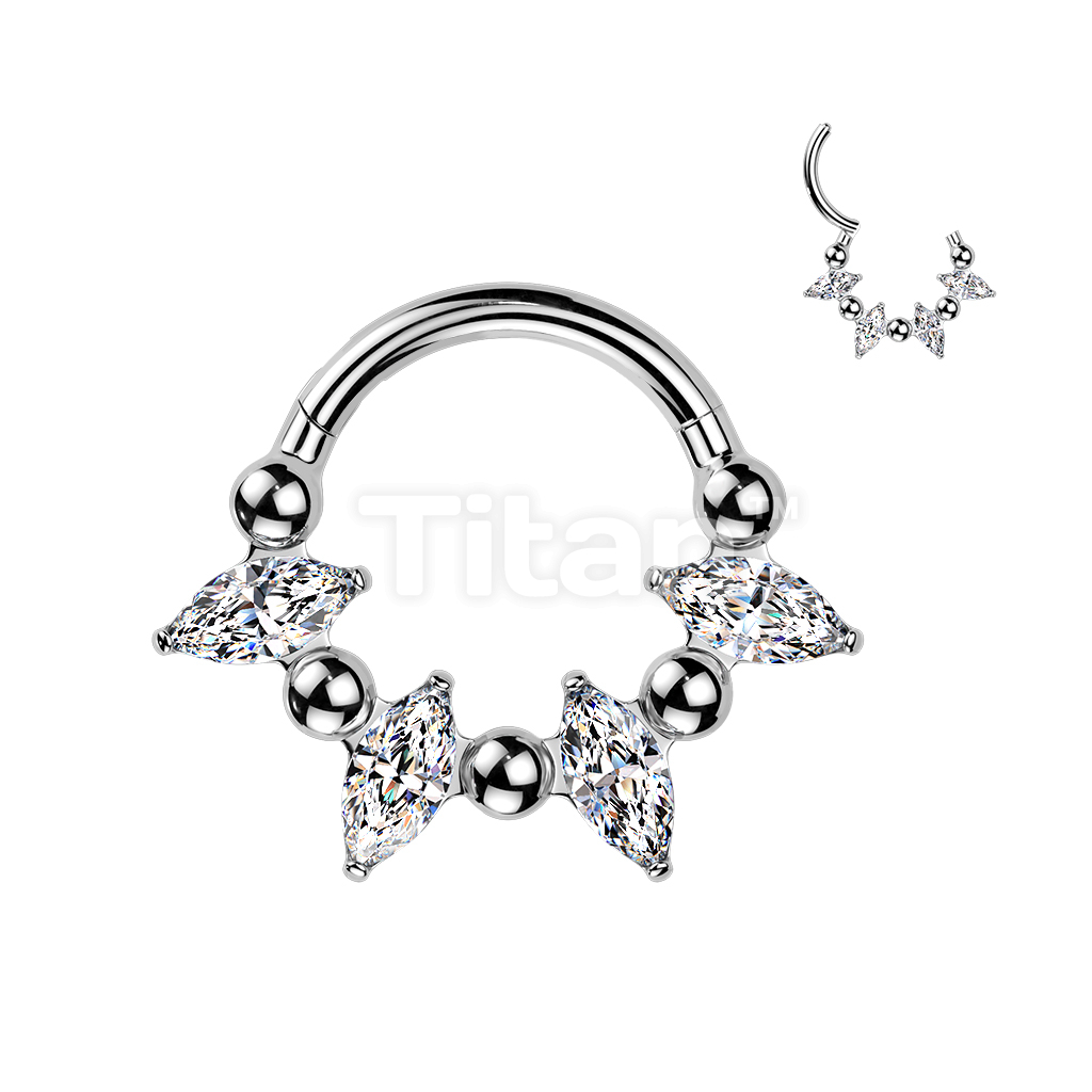 Titanium Hinged Segment Hoop Ring With Marquise CZ And Balls In Between