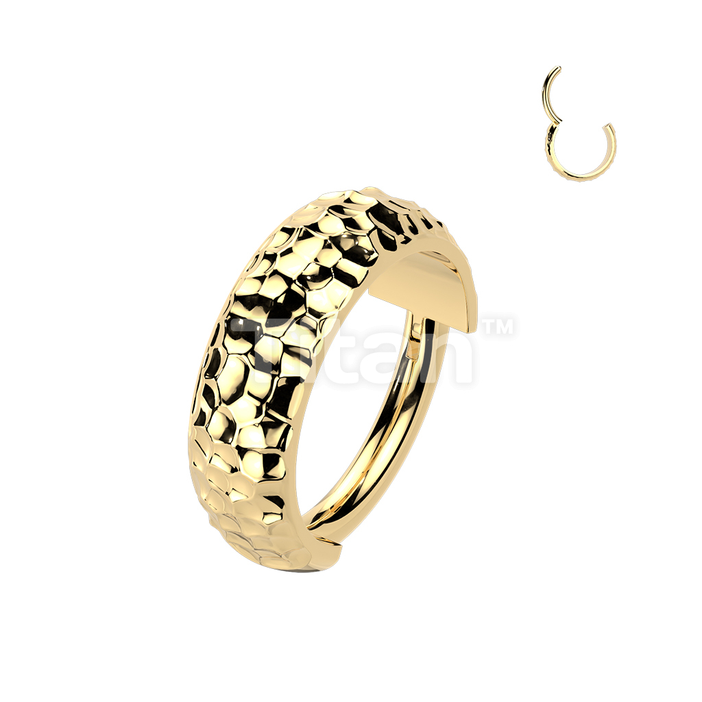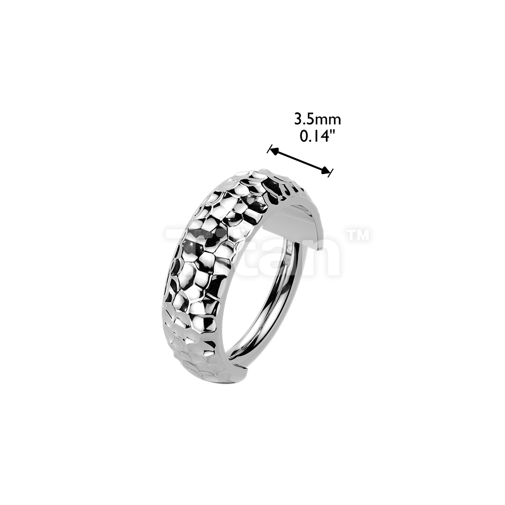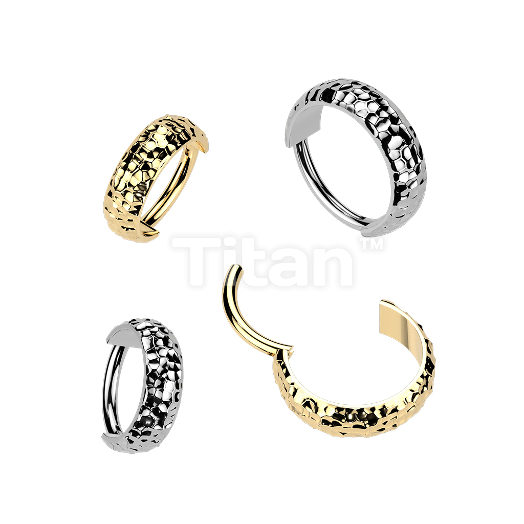 Titanium Wide Hinged Segment Hoop Ring With Hammered Pattern
