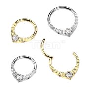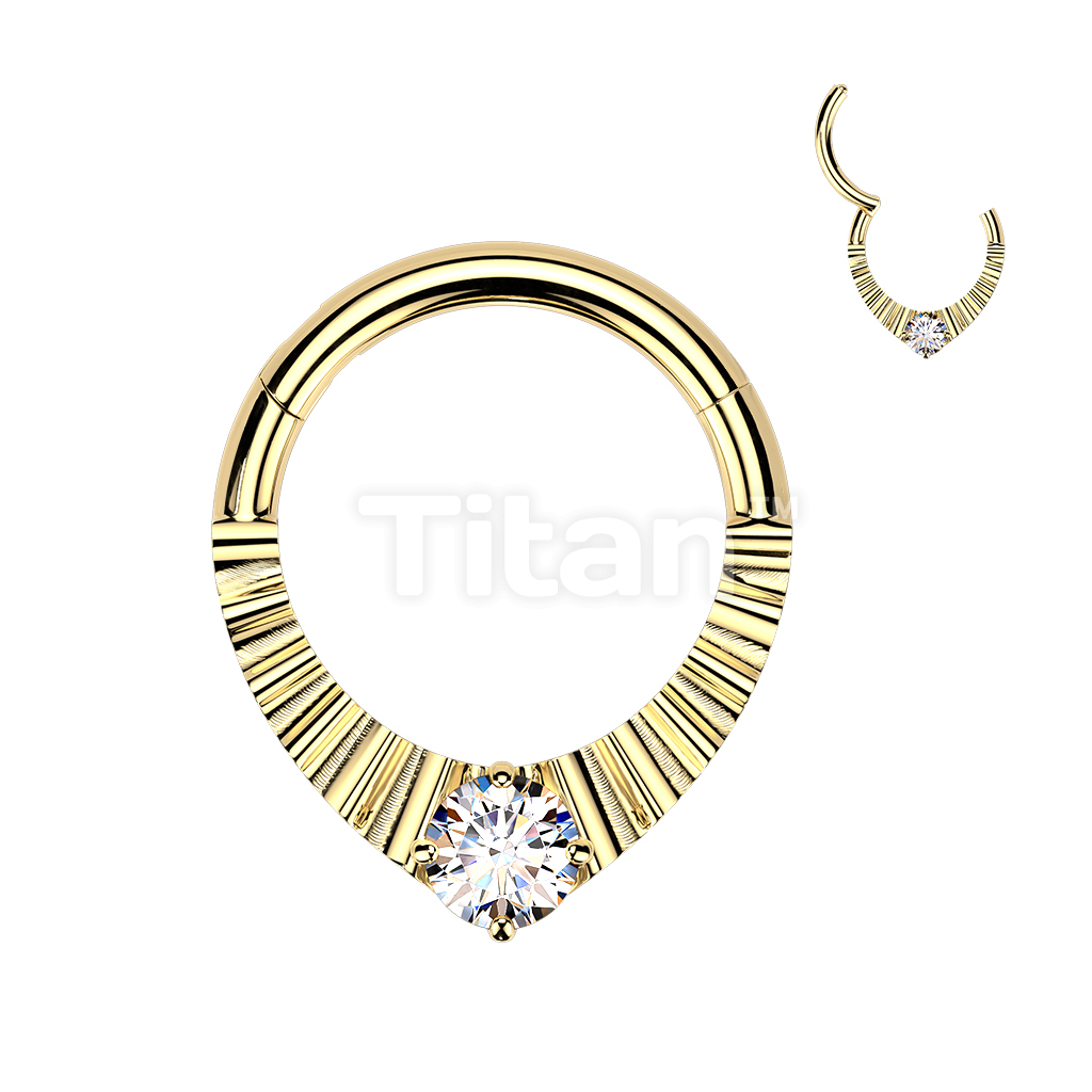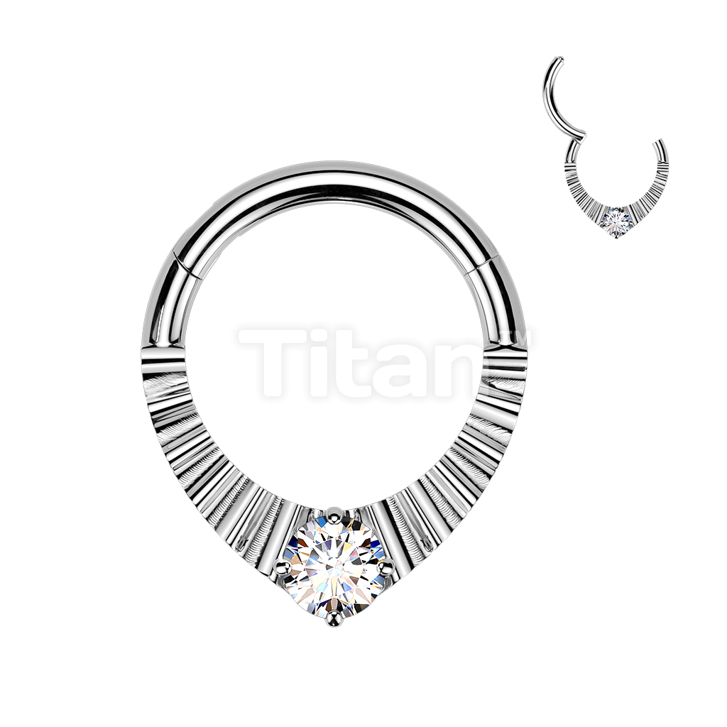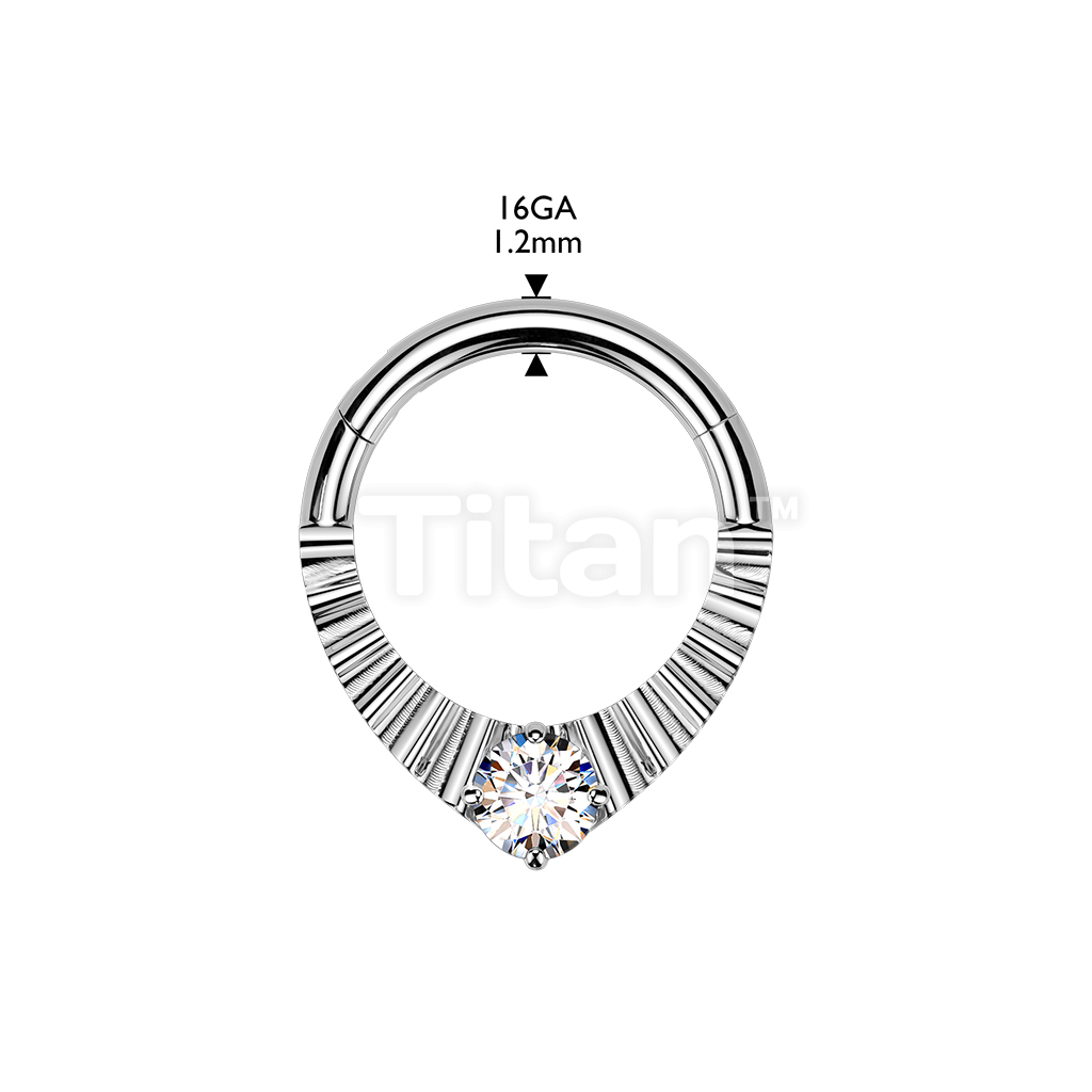 Titanium Hinged Segment Teardrop Hoop Ring With Facets & CZ Center