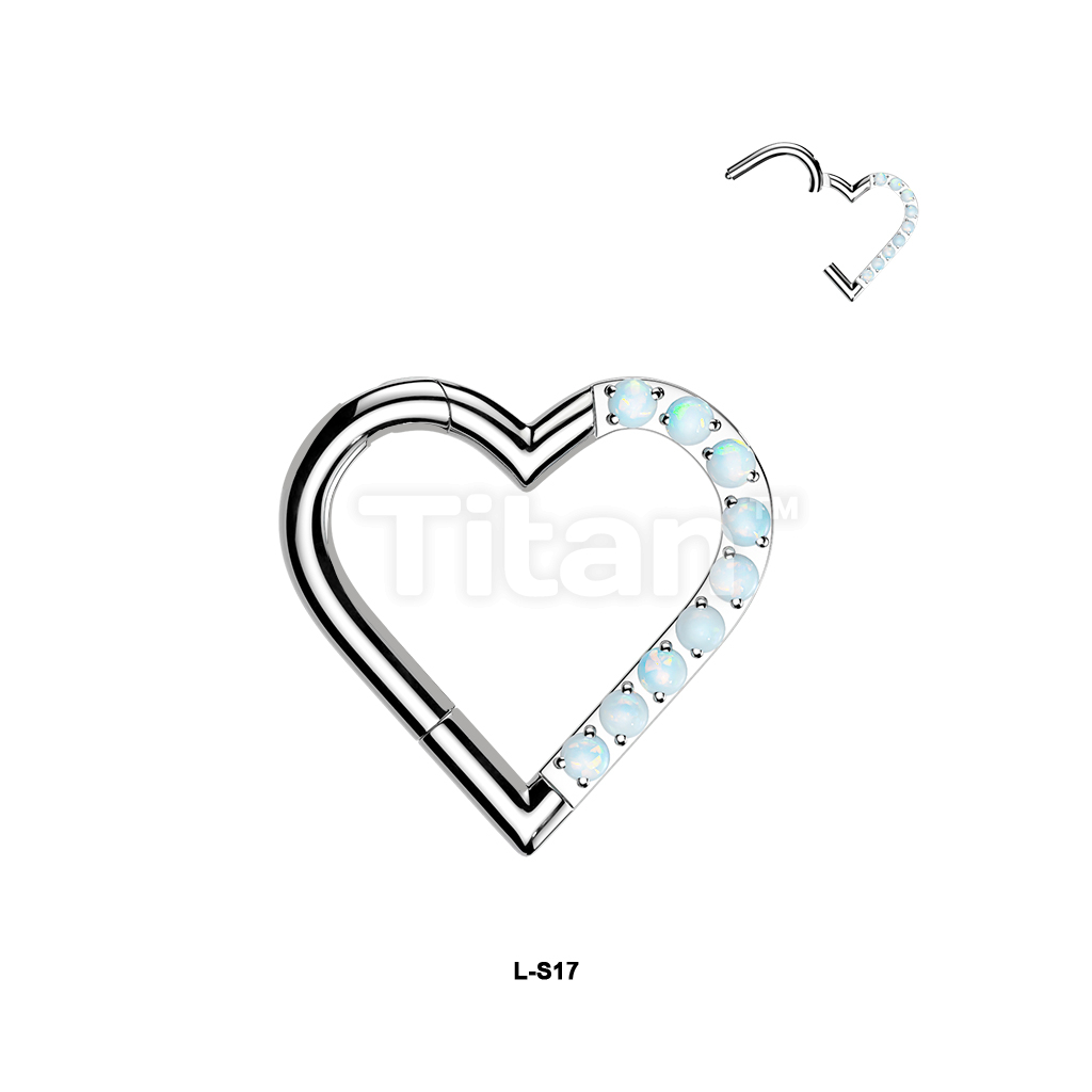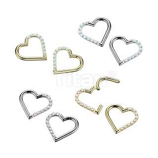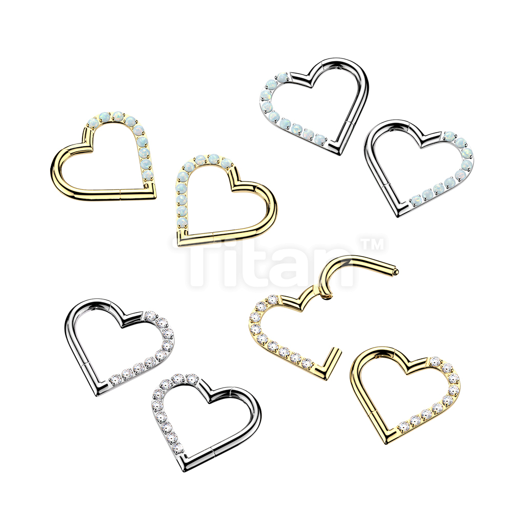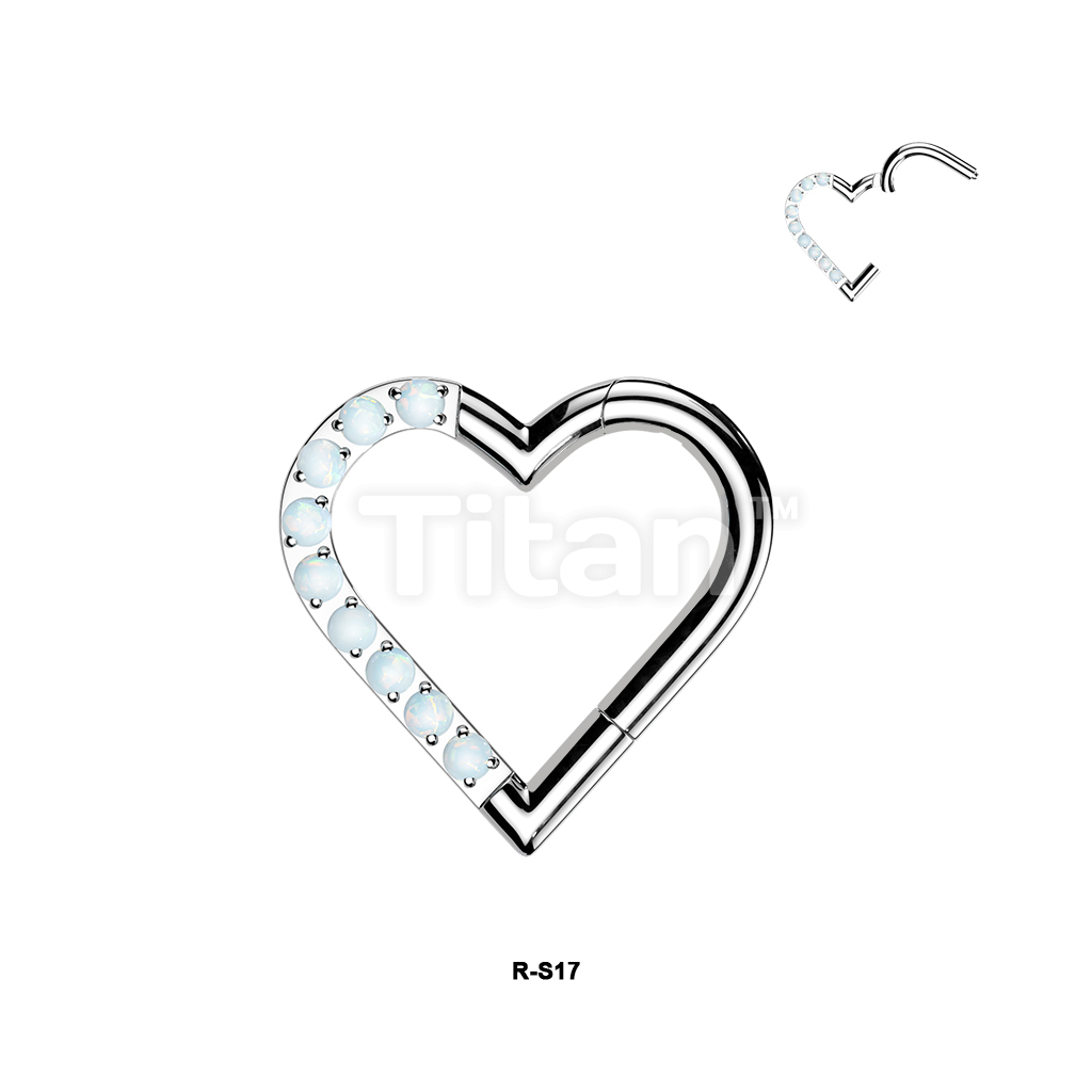 Titanium Hinged Segment Heart Hoop Ring With Half Pave CZ Or Opal