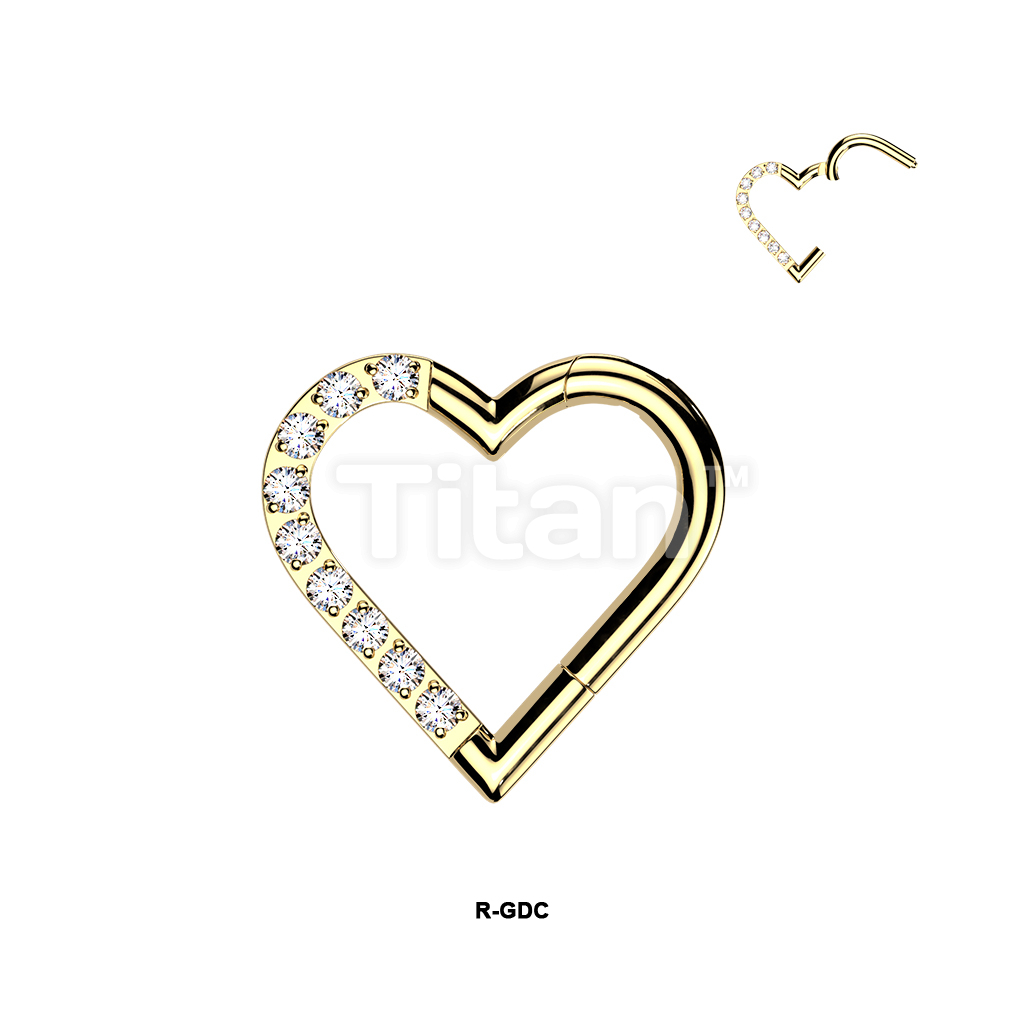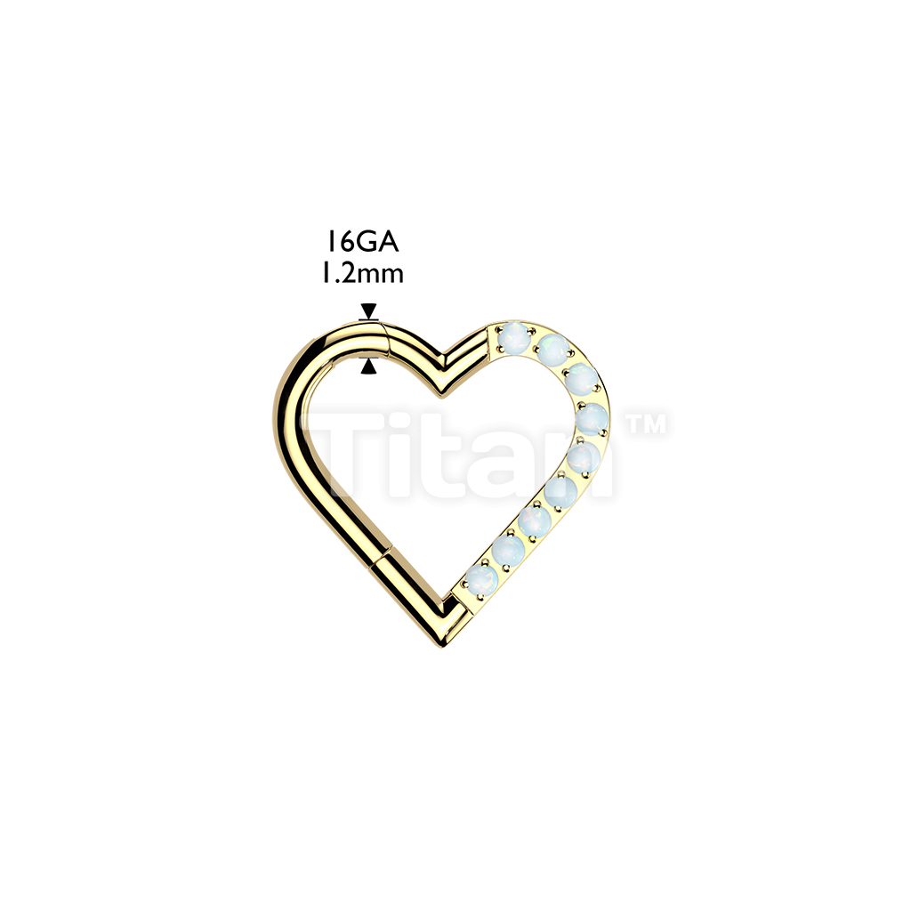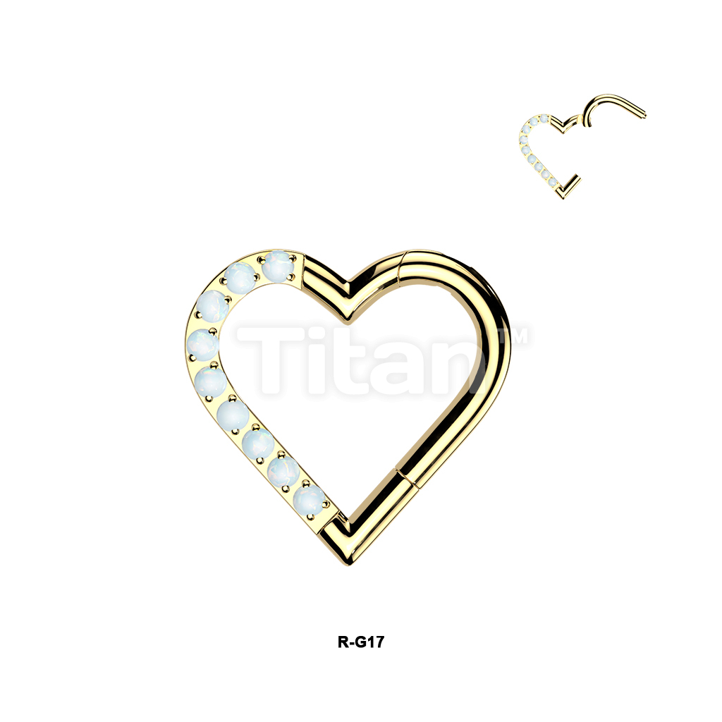 Titanium Hinged Segment Heart Hoop Ring With Half Pave CZ Or Opal
