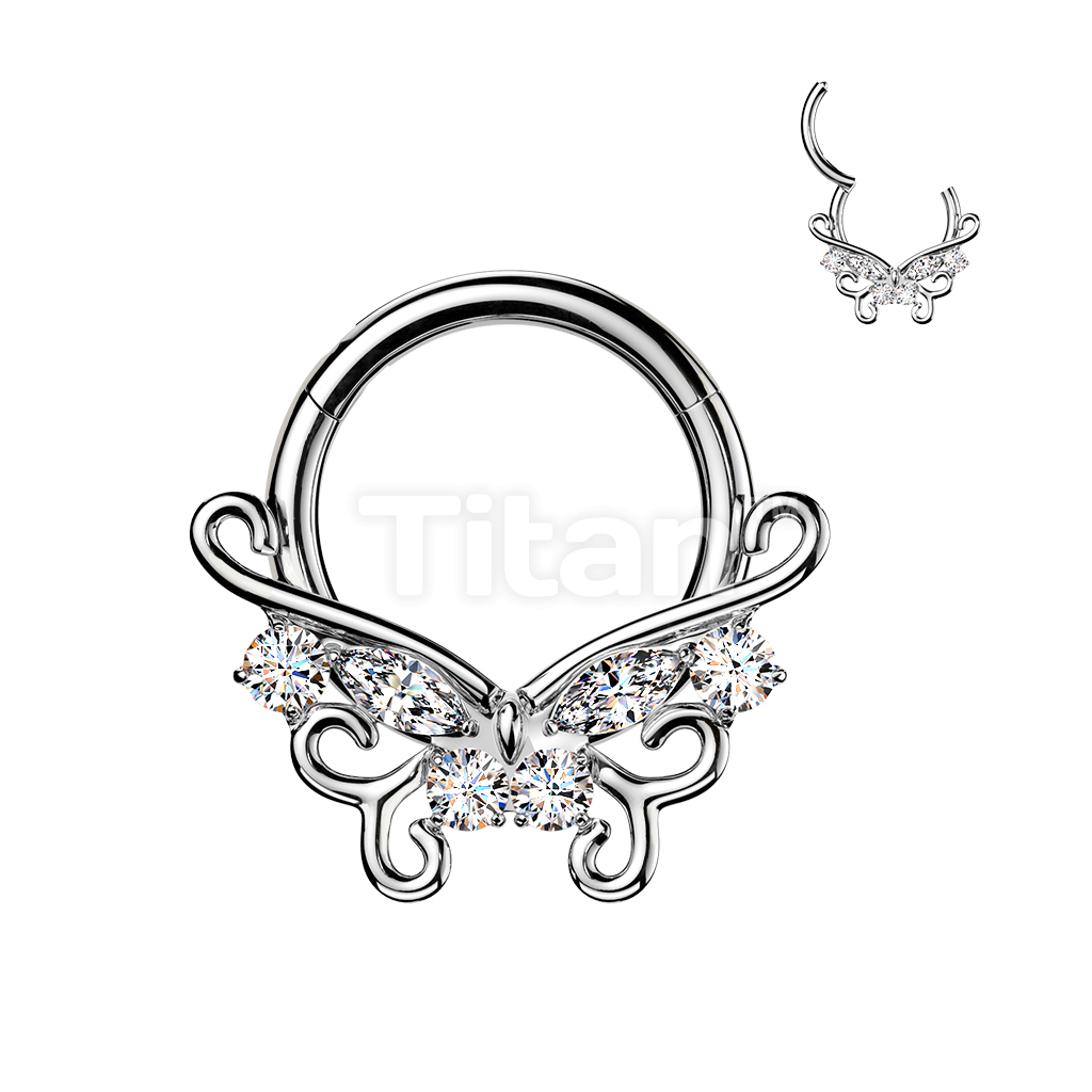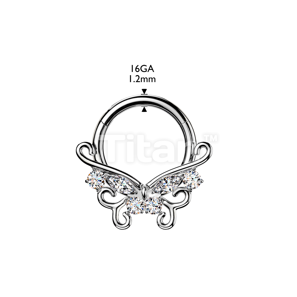 Titanium Hinged Segment Hoop Ring With CZ Accented Filigree Butterfly