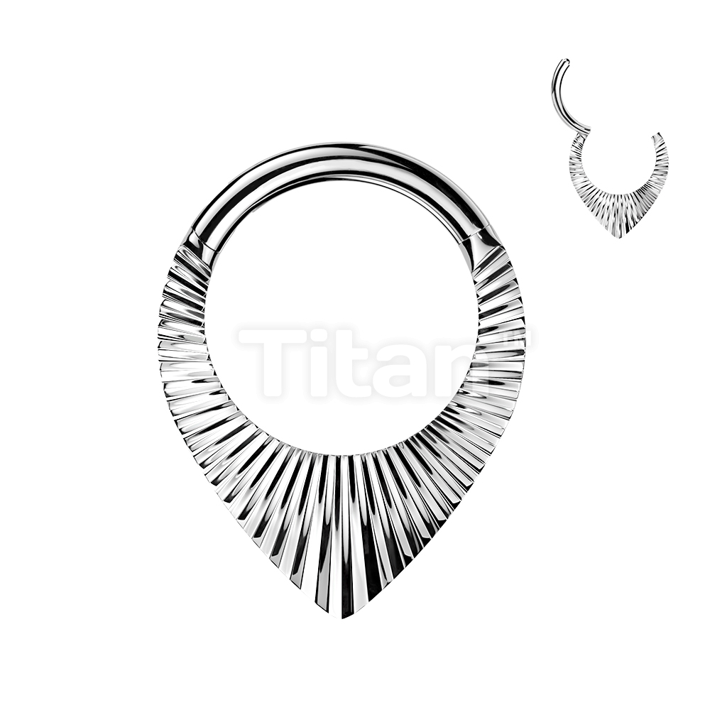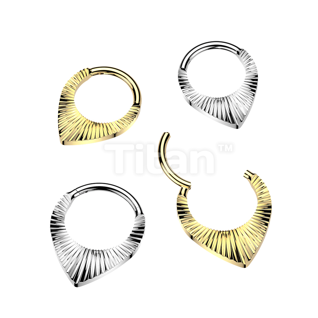 Titanium Teardrop Shaped Hinged Segment Hoop Ring With Diamond Cuts
