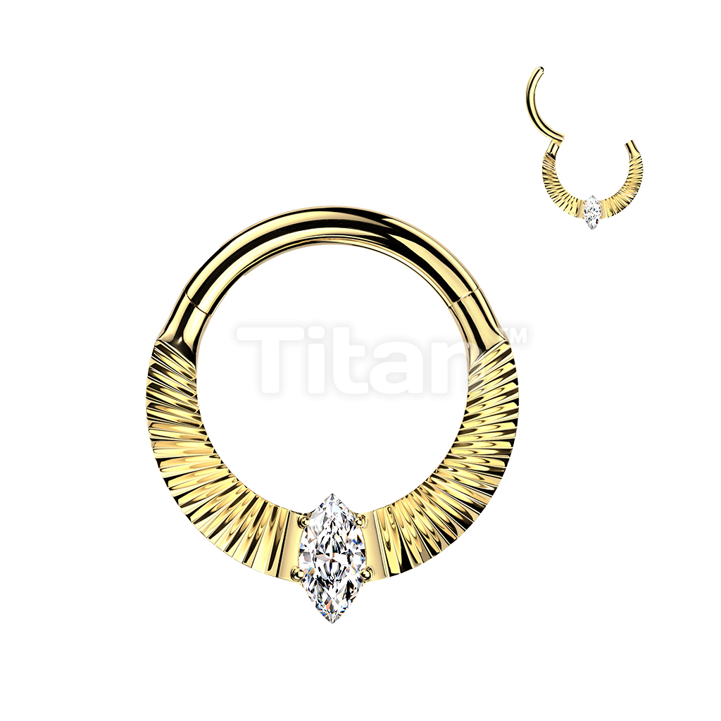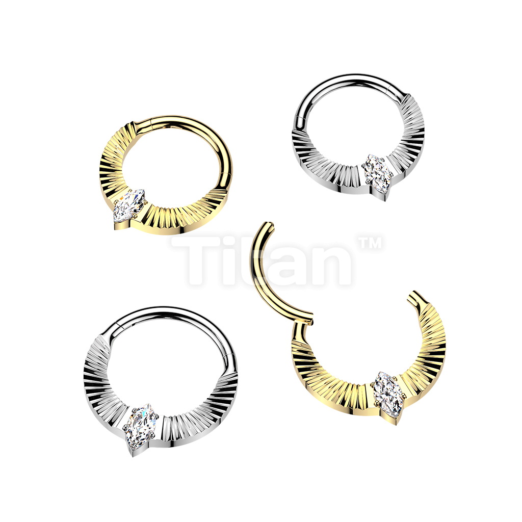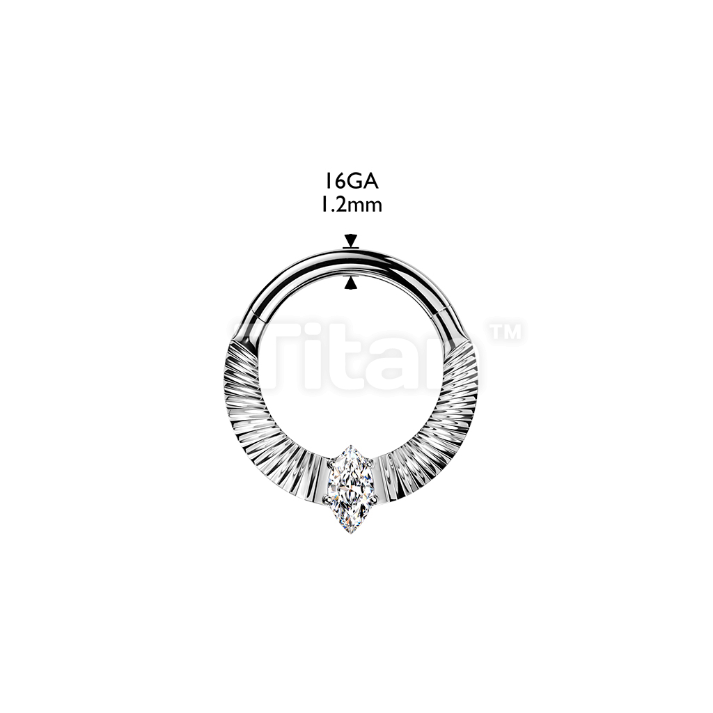 Titanium Hinged Segment Hoop Ring With Diamond Cuts & Marquise CZ Center