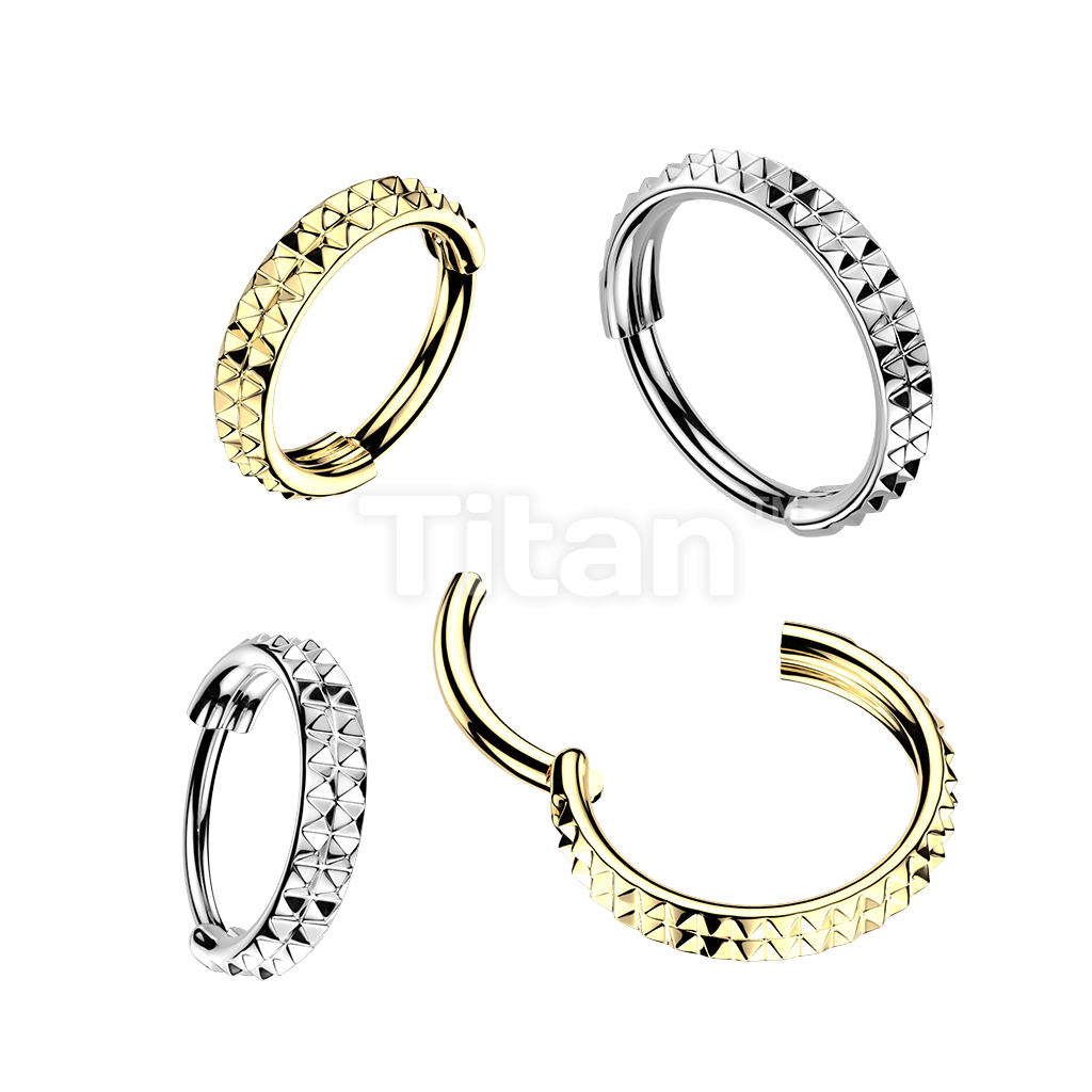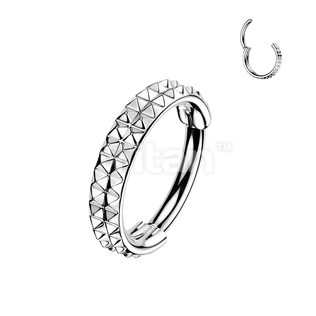 Titanium Hinged Segment Hoop Ring With Double Lined Outward Facing Pyramid Cuts 16ga-20ga