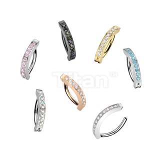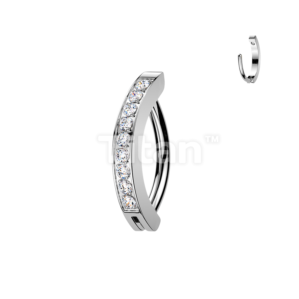 Titanium Hinged Hoop Clicker Eyebrow Ring With 1.5mm CNC Set CZs