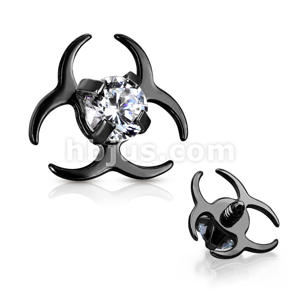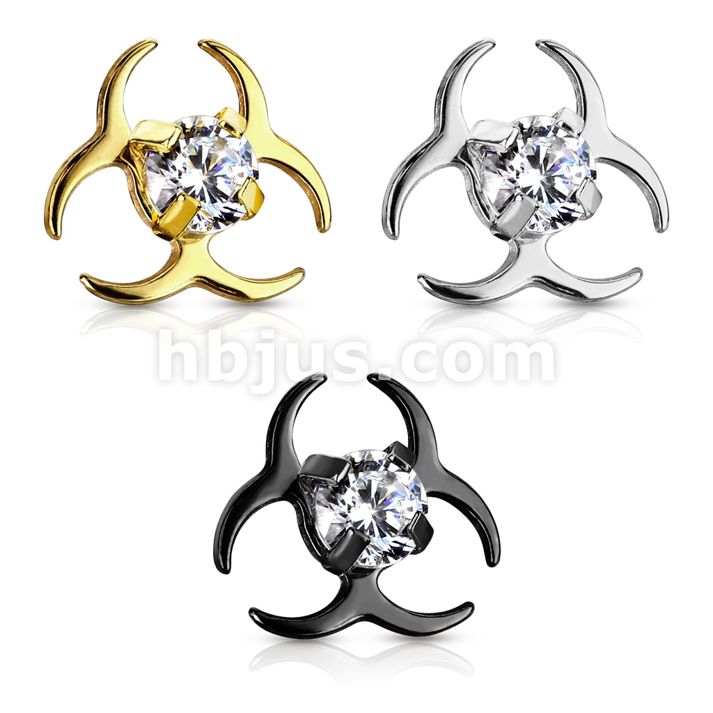 Clear CZ Centered Biohazard Symbol Internally Threaded 316L Surgical Steel Dermal Top
