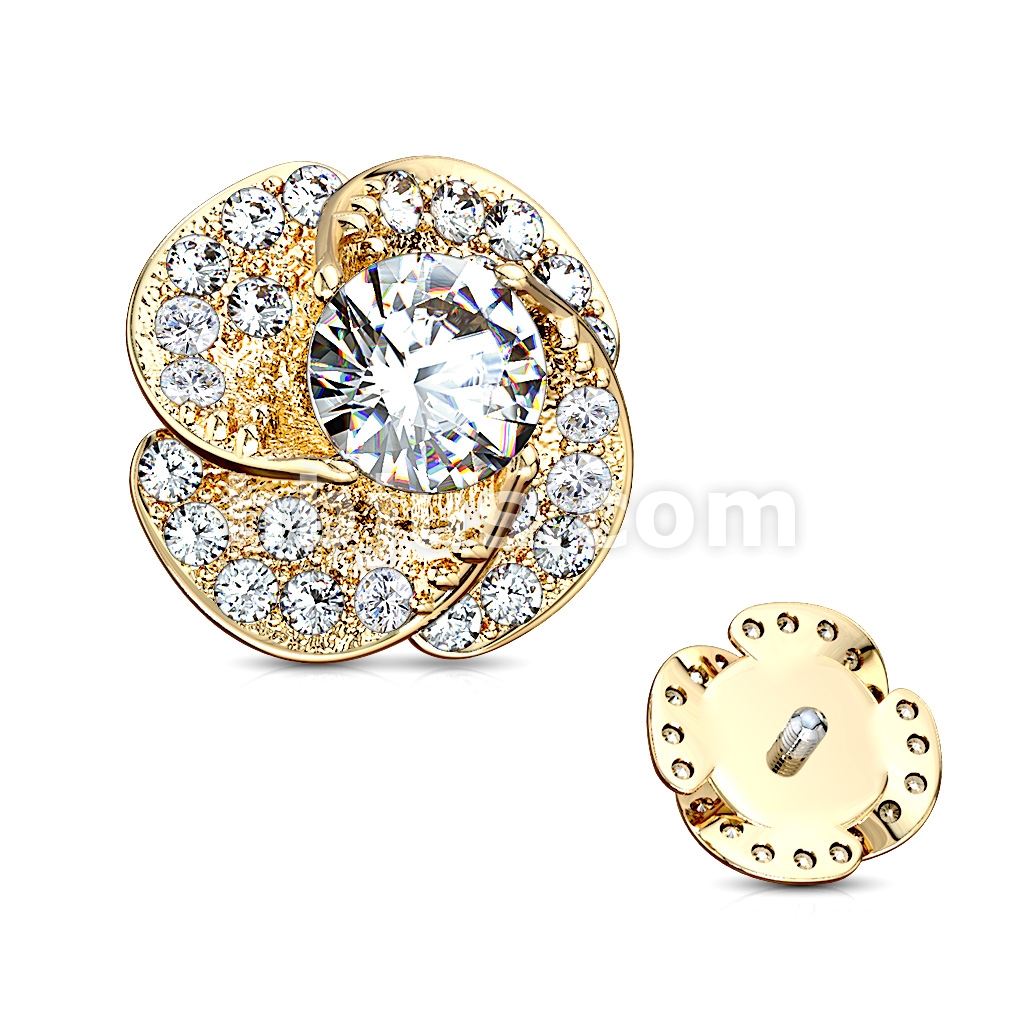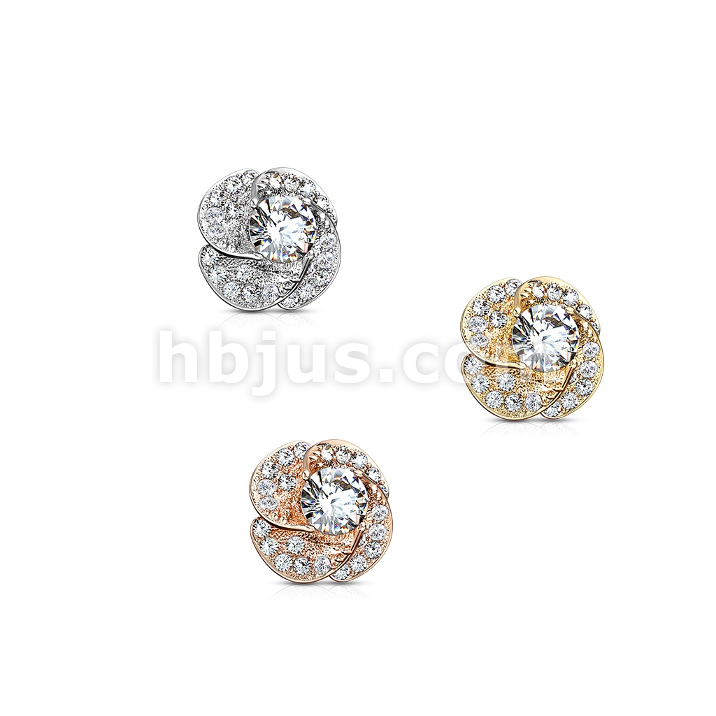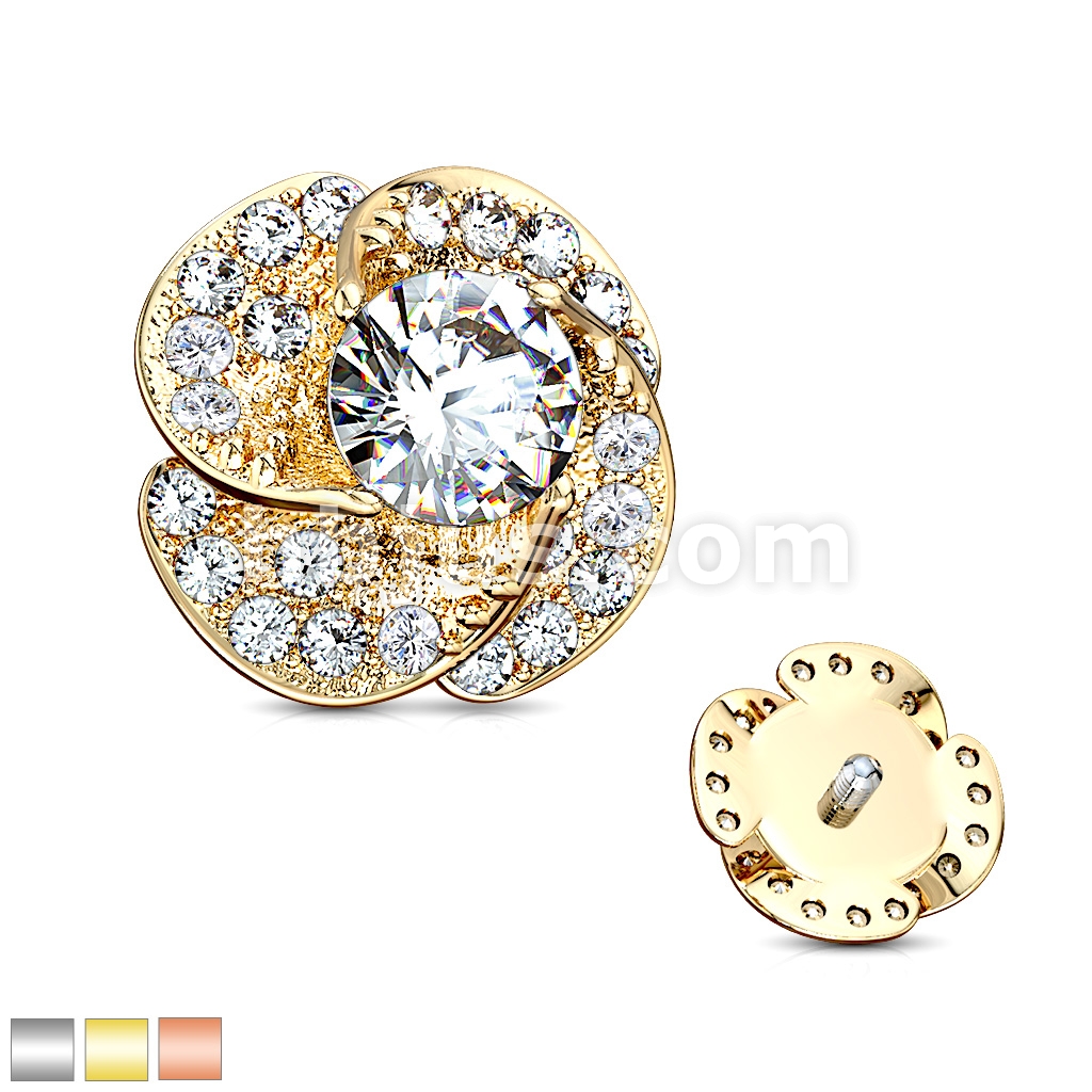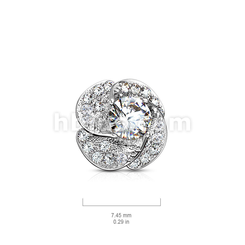 CZ Paved and Round CZ Center Rose Blossom Internally Threaded Dermal Top