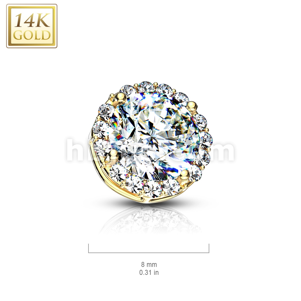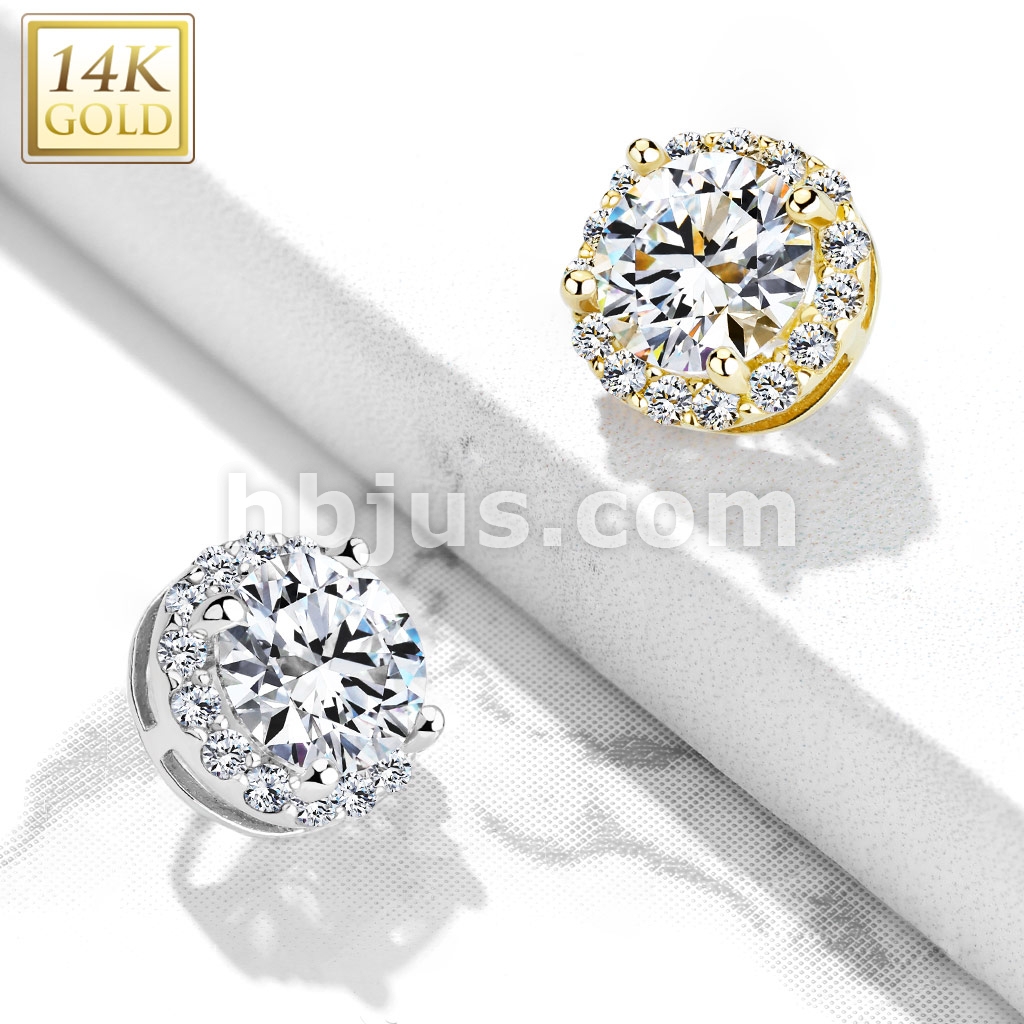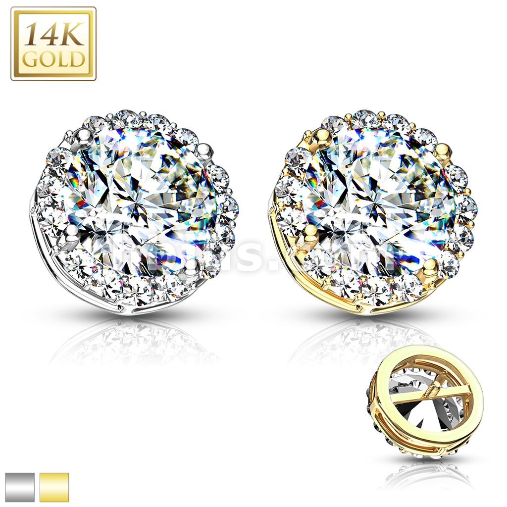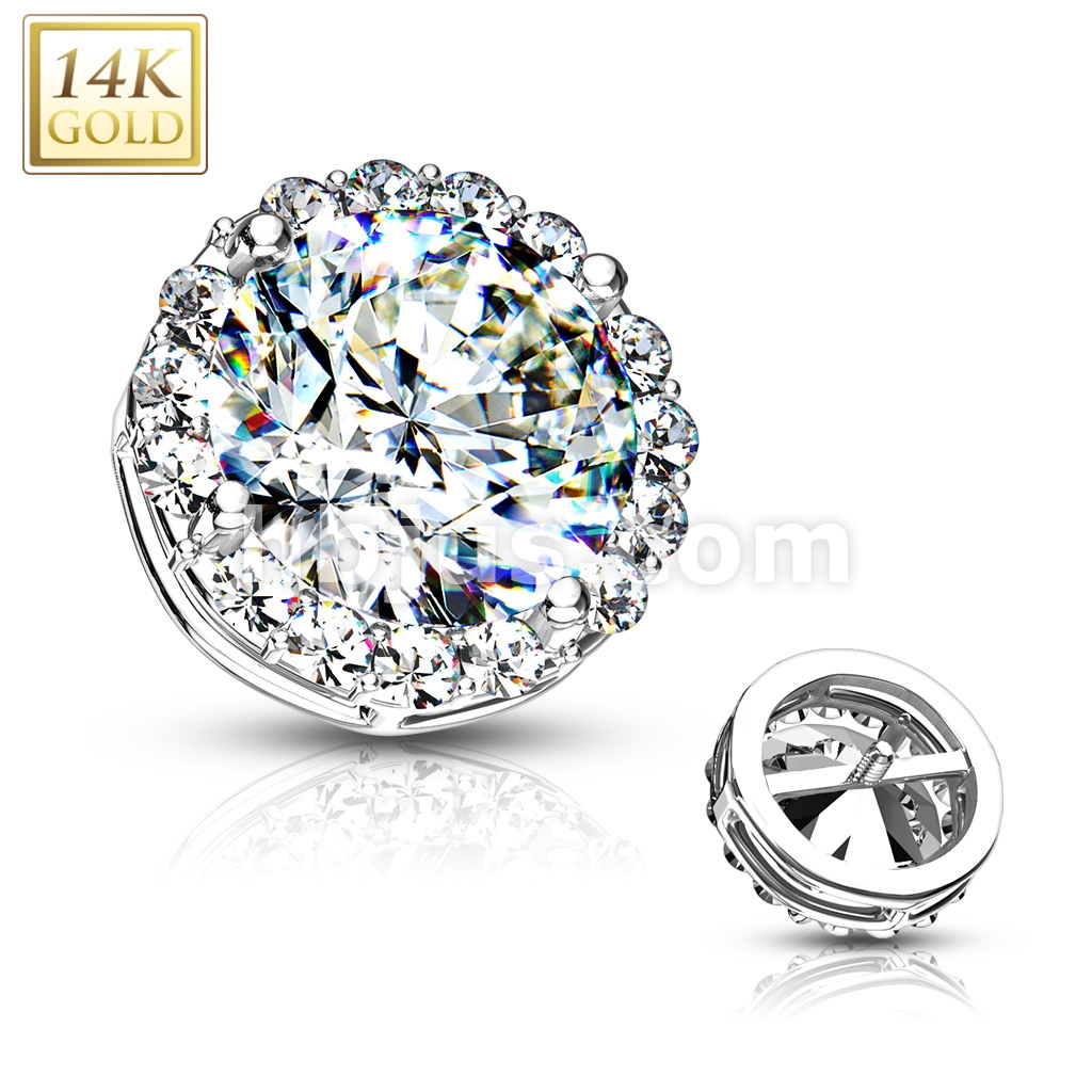 14 Kt. CZ Paved Around Large CZ Center Dermal Anchor Top