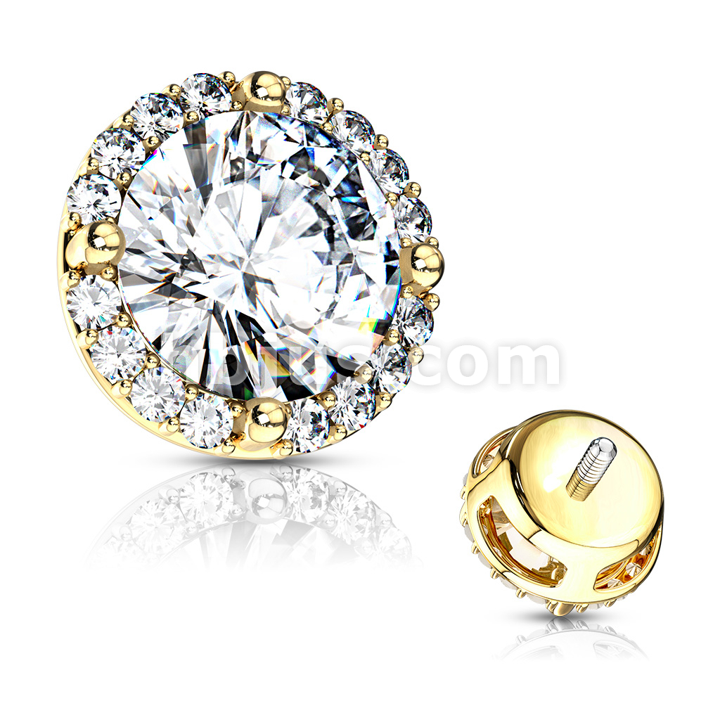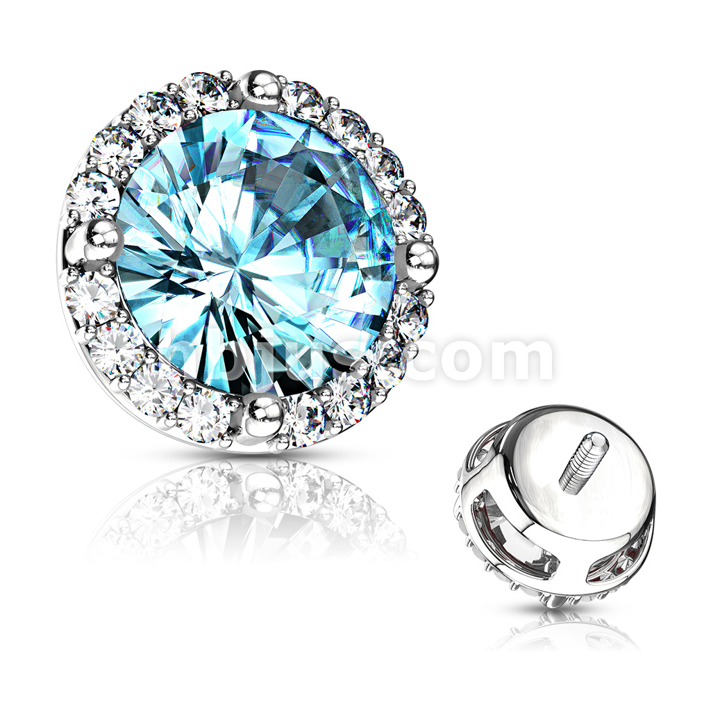 Round Prong Set CZ Center with CZ Around Internal Threaded Dermal Anchor Tops