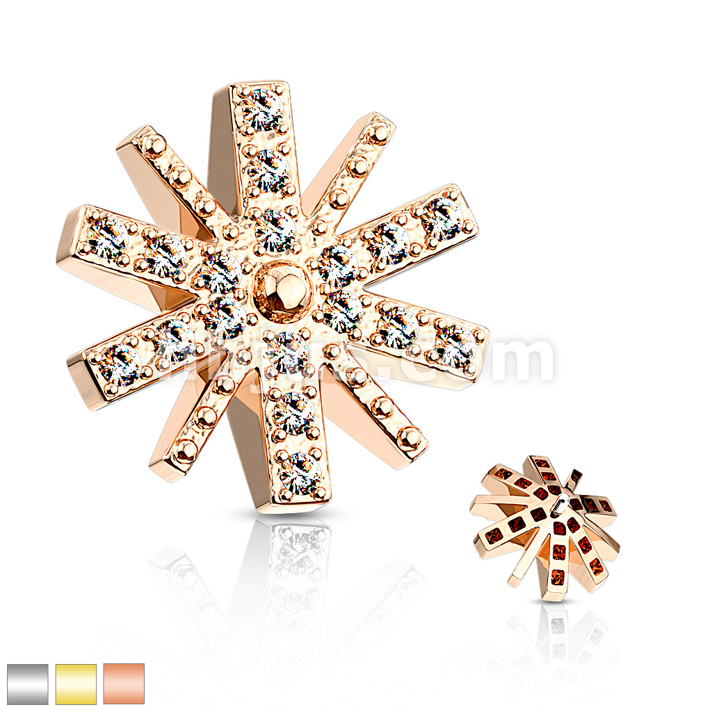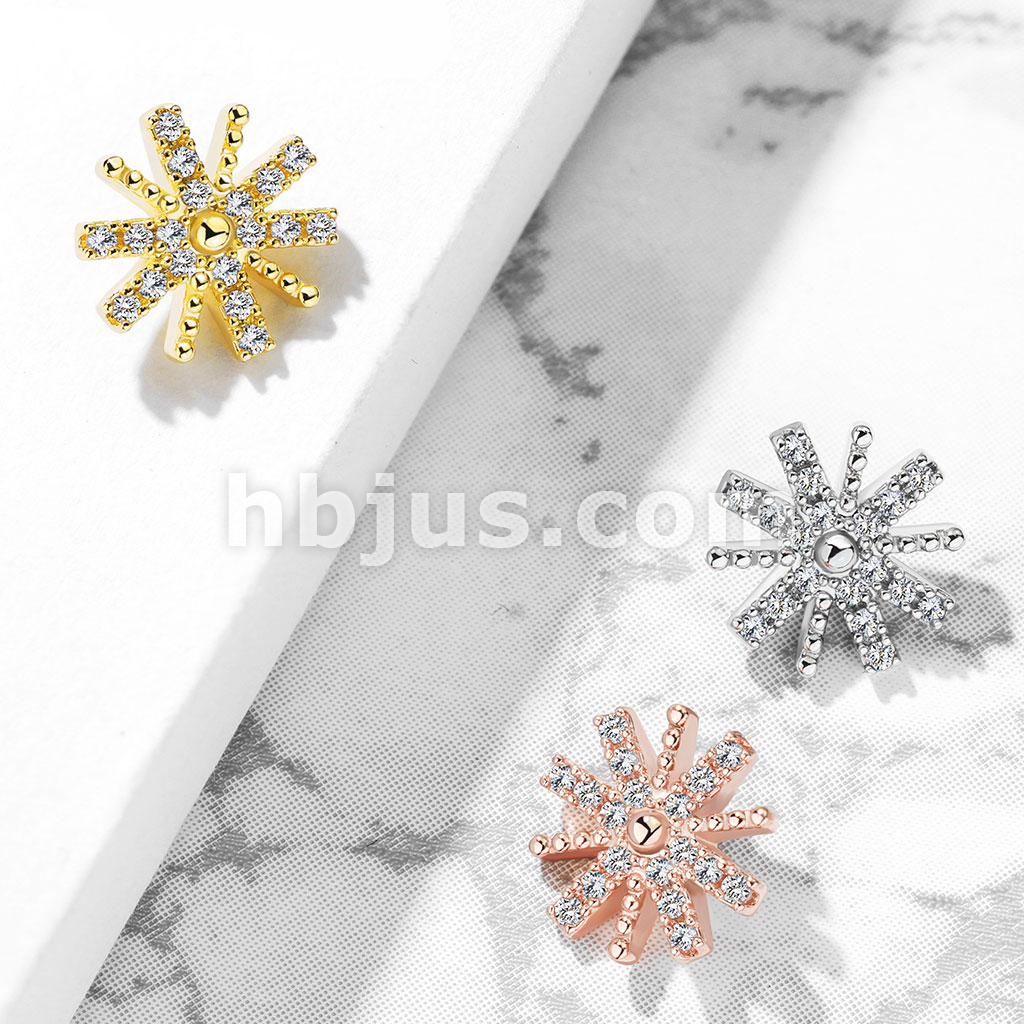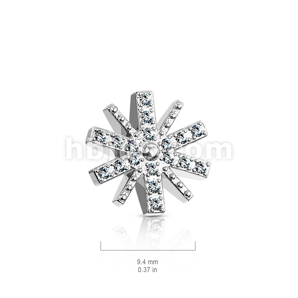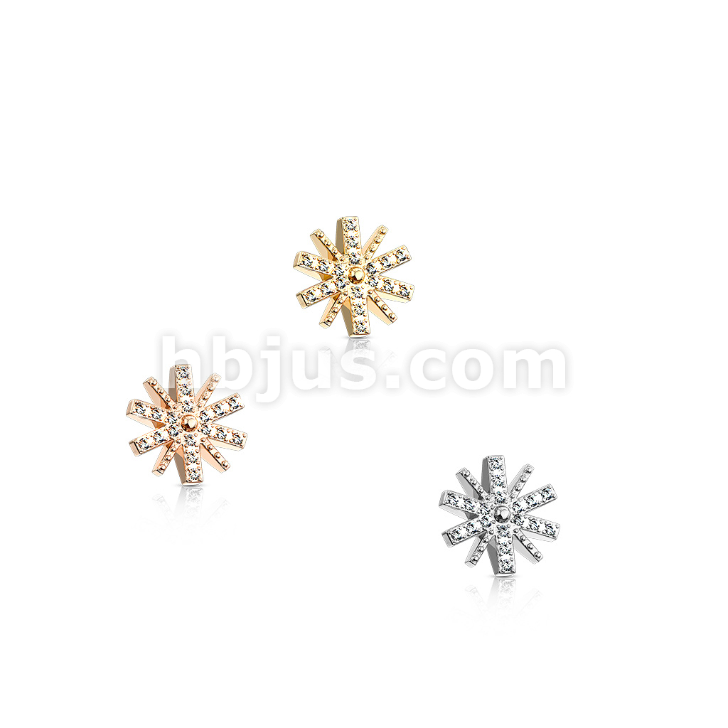 CZ Paved Snow Flake Internal Thread Dermal Anchor Top