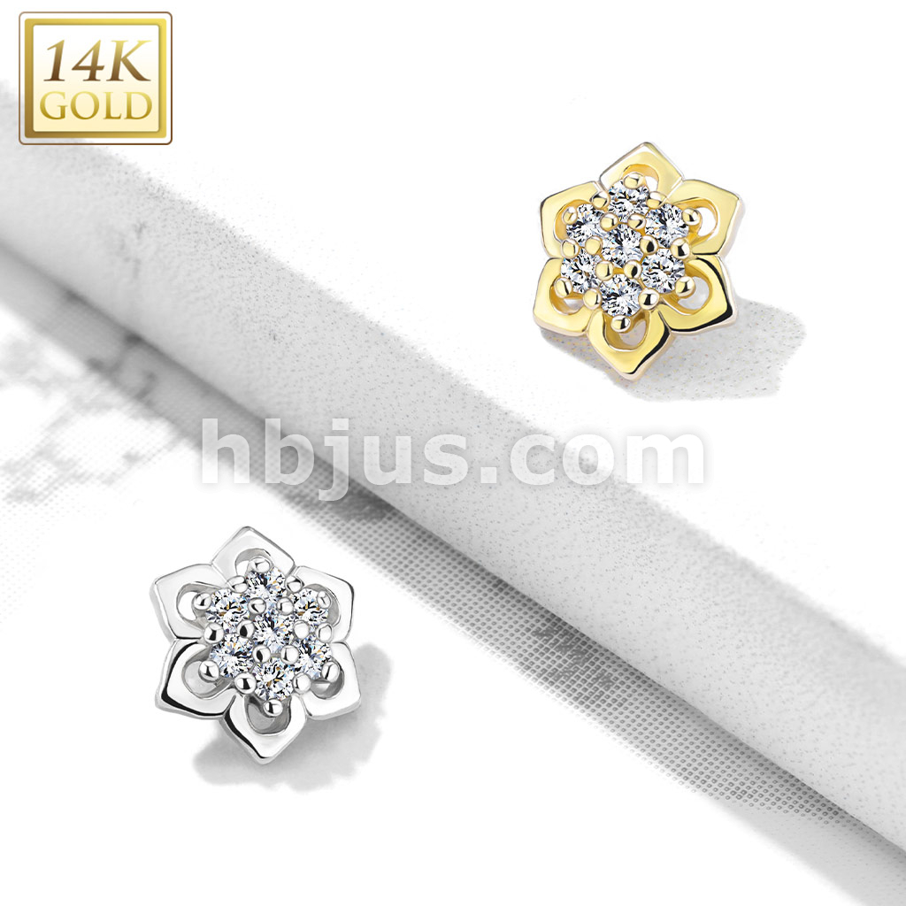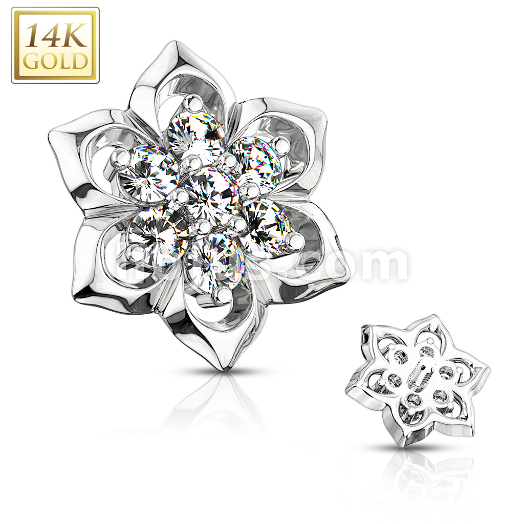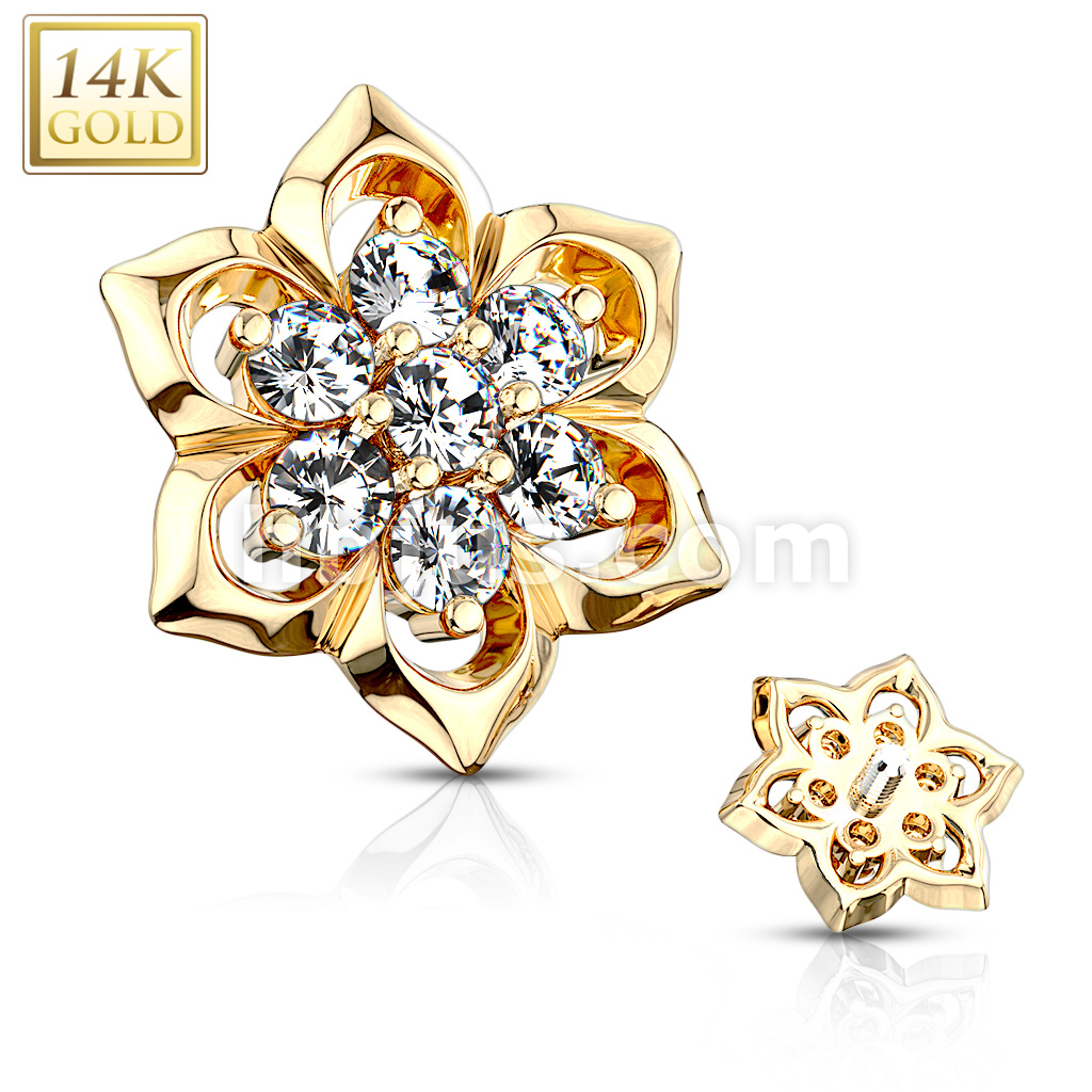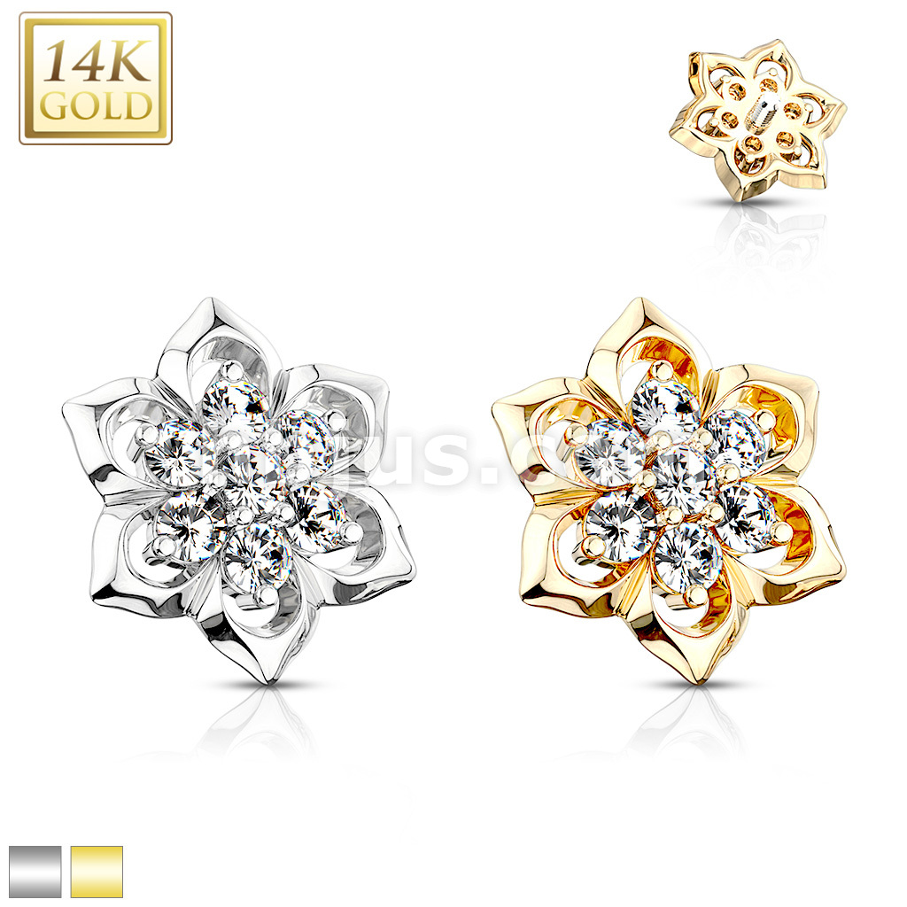 14K Double Tiered 7 CZ Cluster Center Flower Dermal Anchor Top