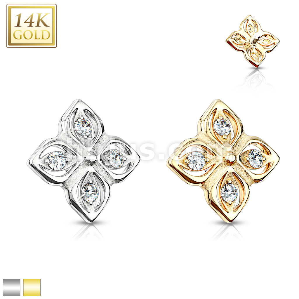 14K Gold 4 CZ Paved Petal Flower Dermal Anchor Top