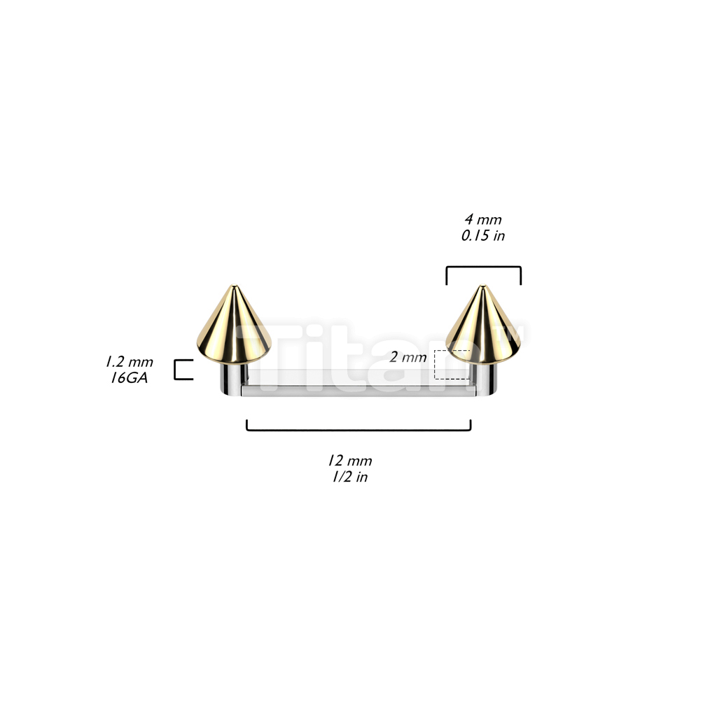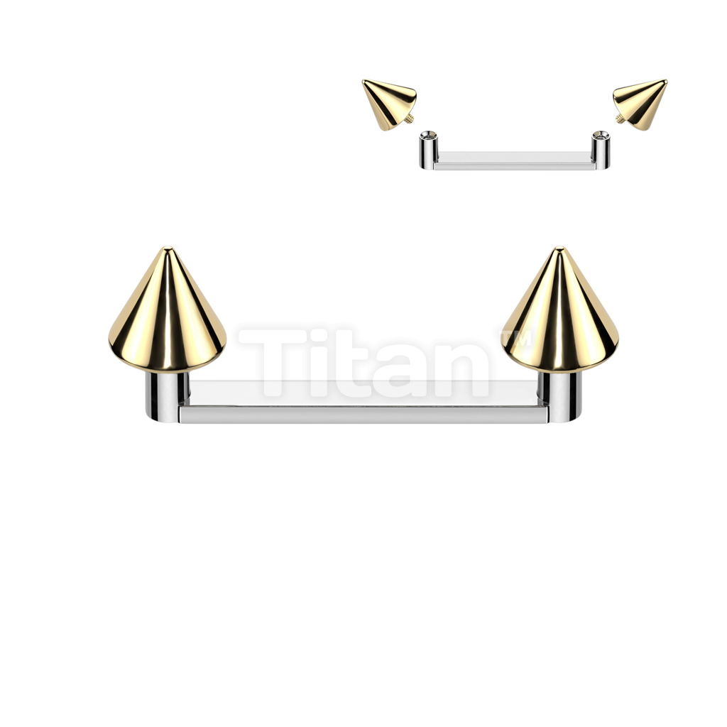 Implant Grade Titanium Internally Threaded Flat Surface Barbell With 2mm Rise and Titanium Spike Tops