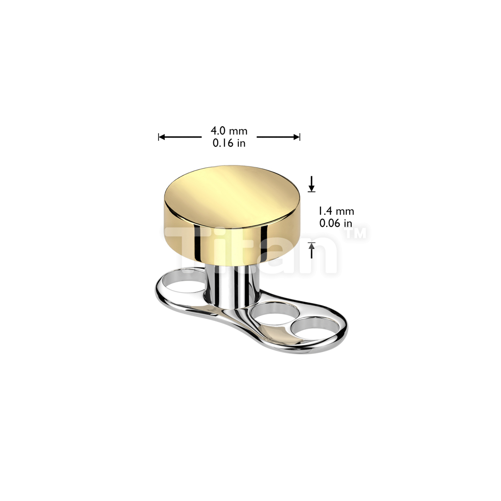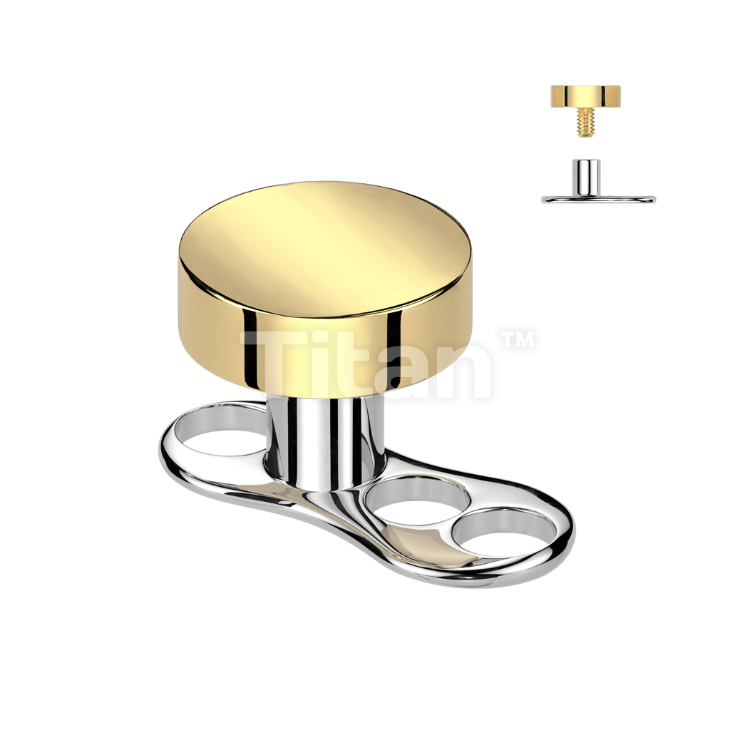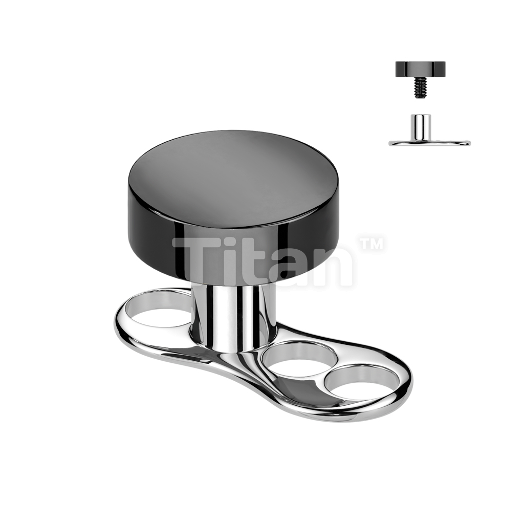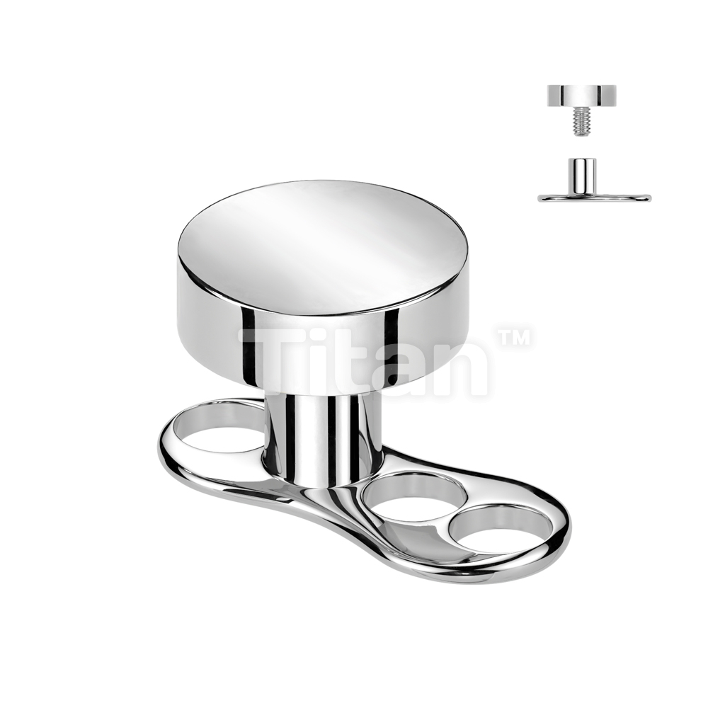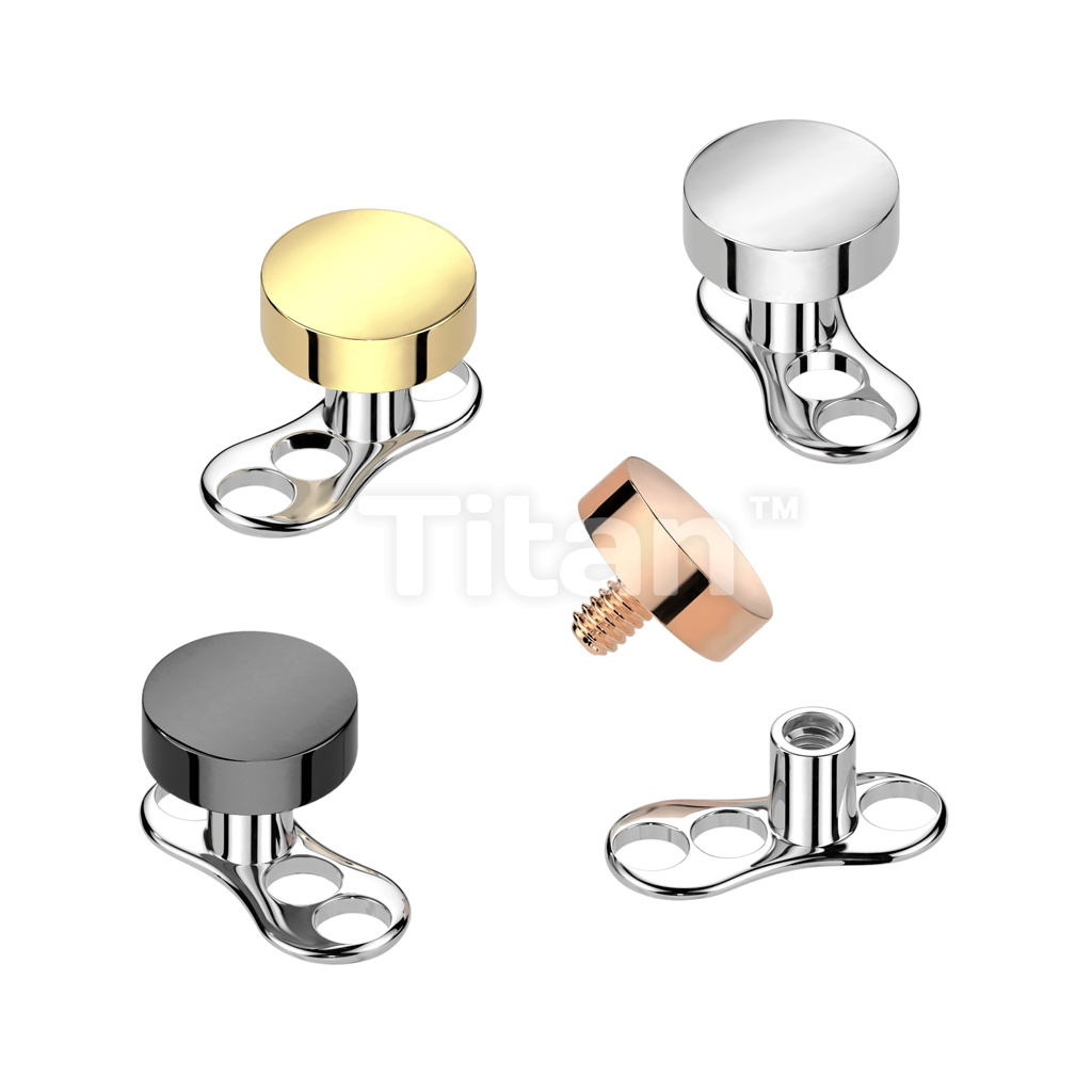 Implant Grade Titanium Internally Threaded 16 Gauge 3 Hole Dermal Anchors With 2mm Rise and Titanium Flat Round Top