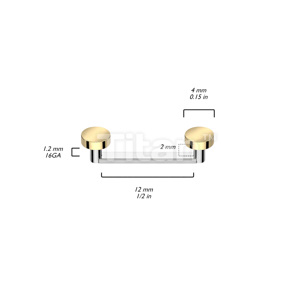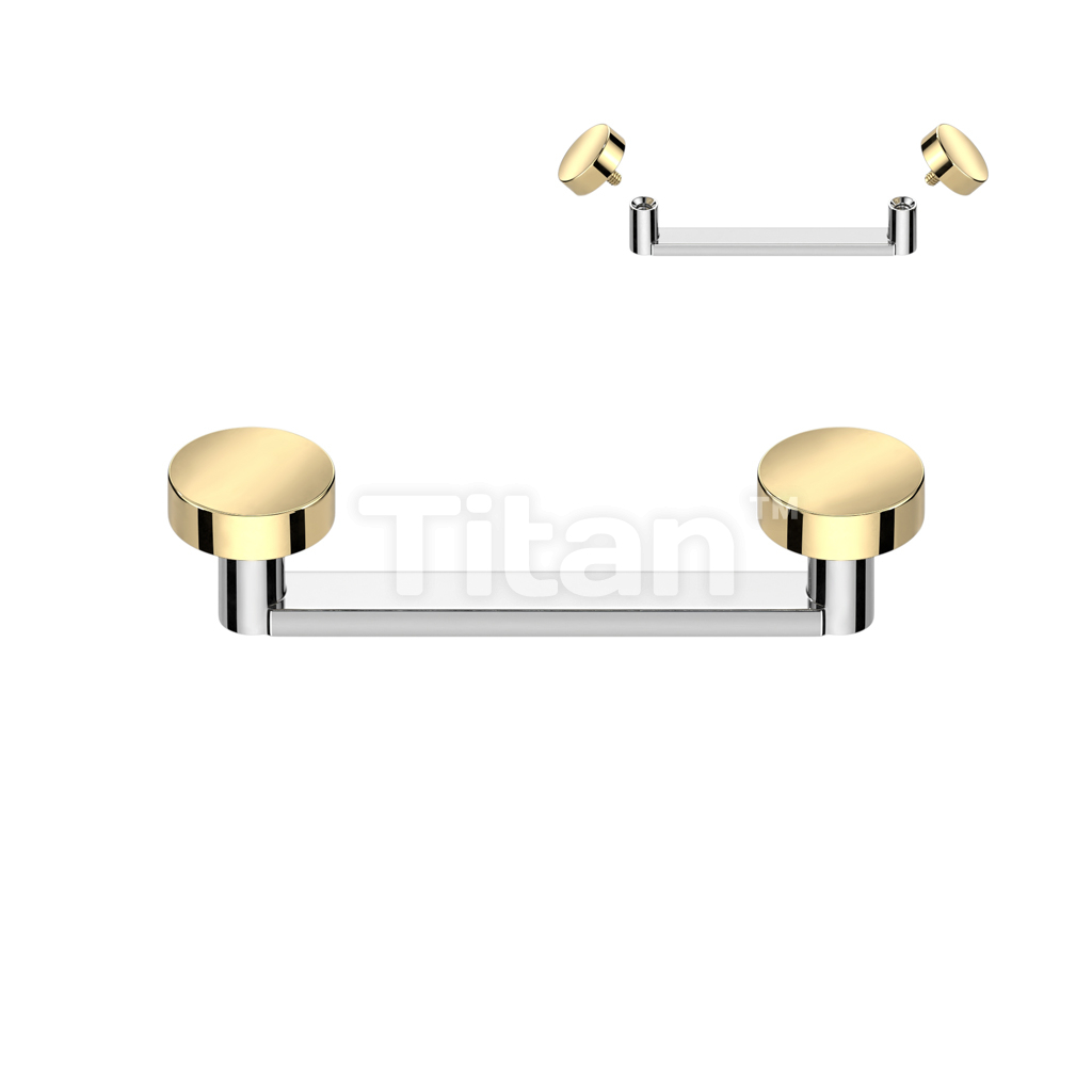 Implant Grade Titanium Internally Threaded Flat Surface Barbell With 2mm Rise and Titanium Flat Round Tops
