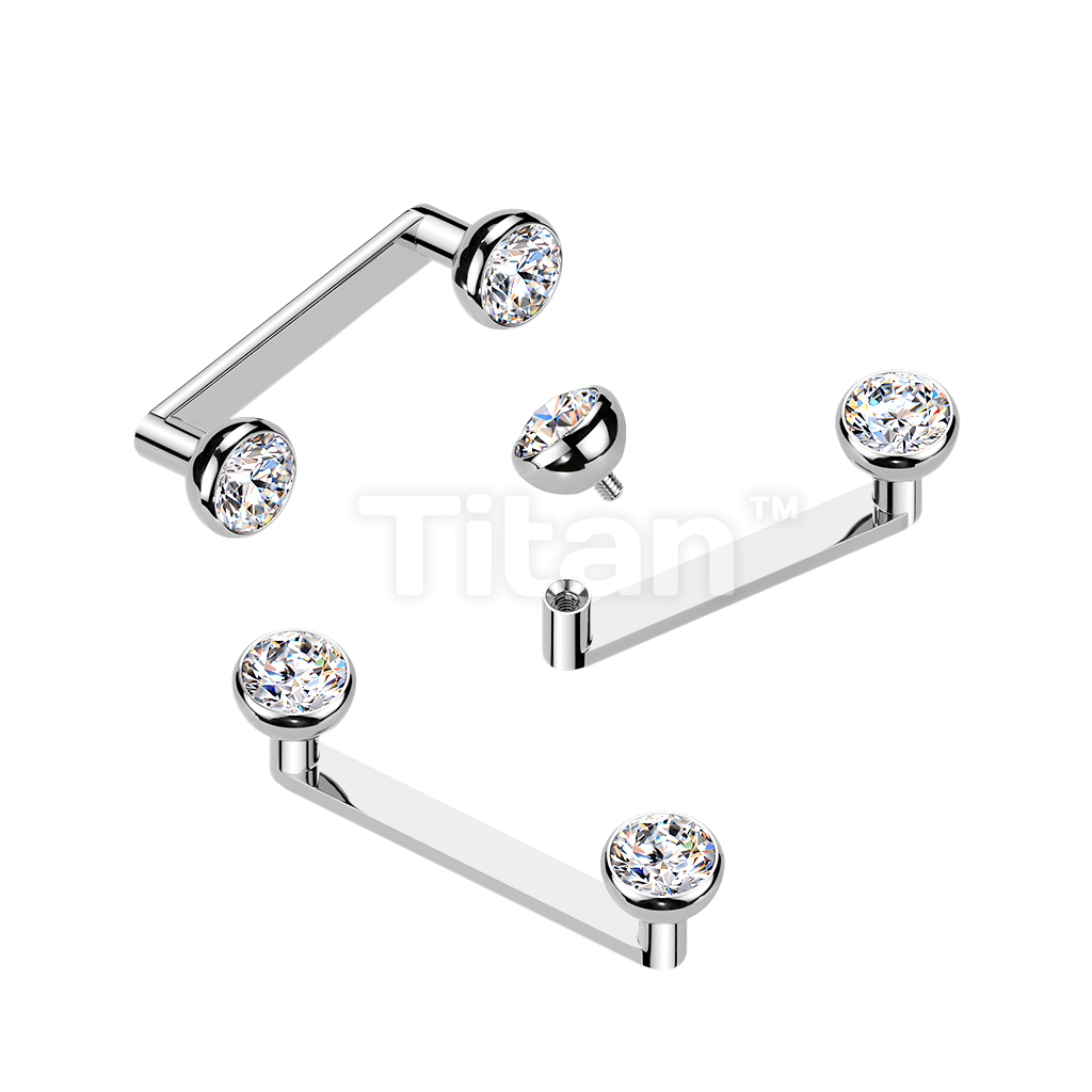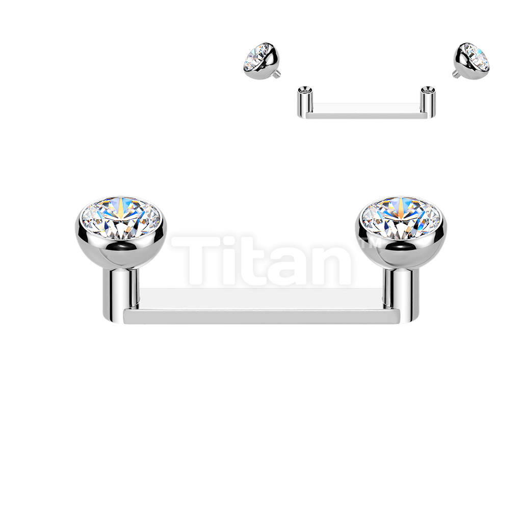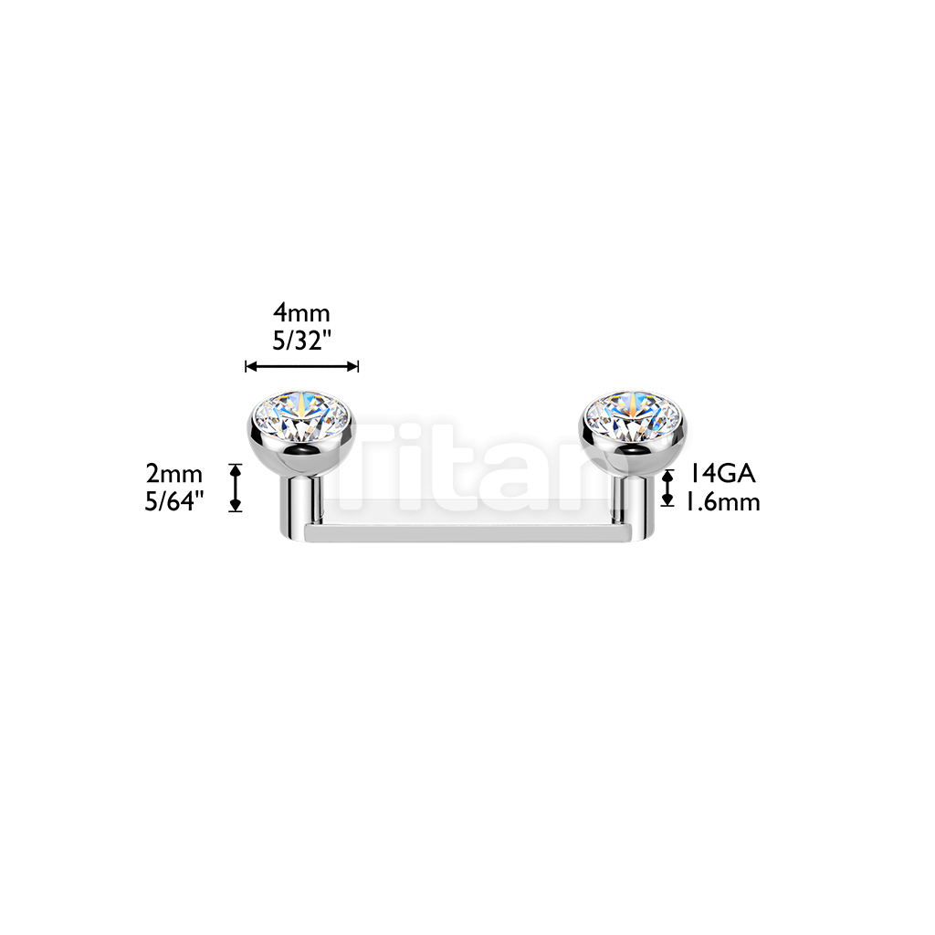 Titanium Internally Threaded Flat Surface Barbell With 2mm Rise and Bezel Set Gem Tops