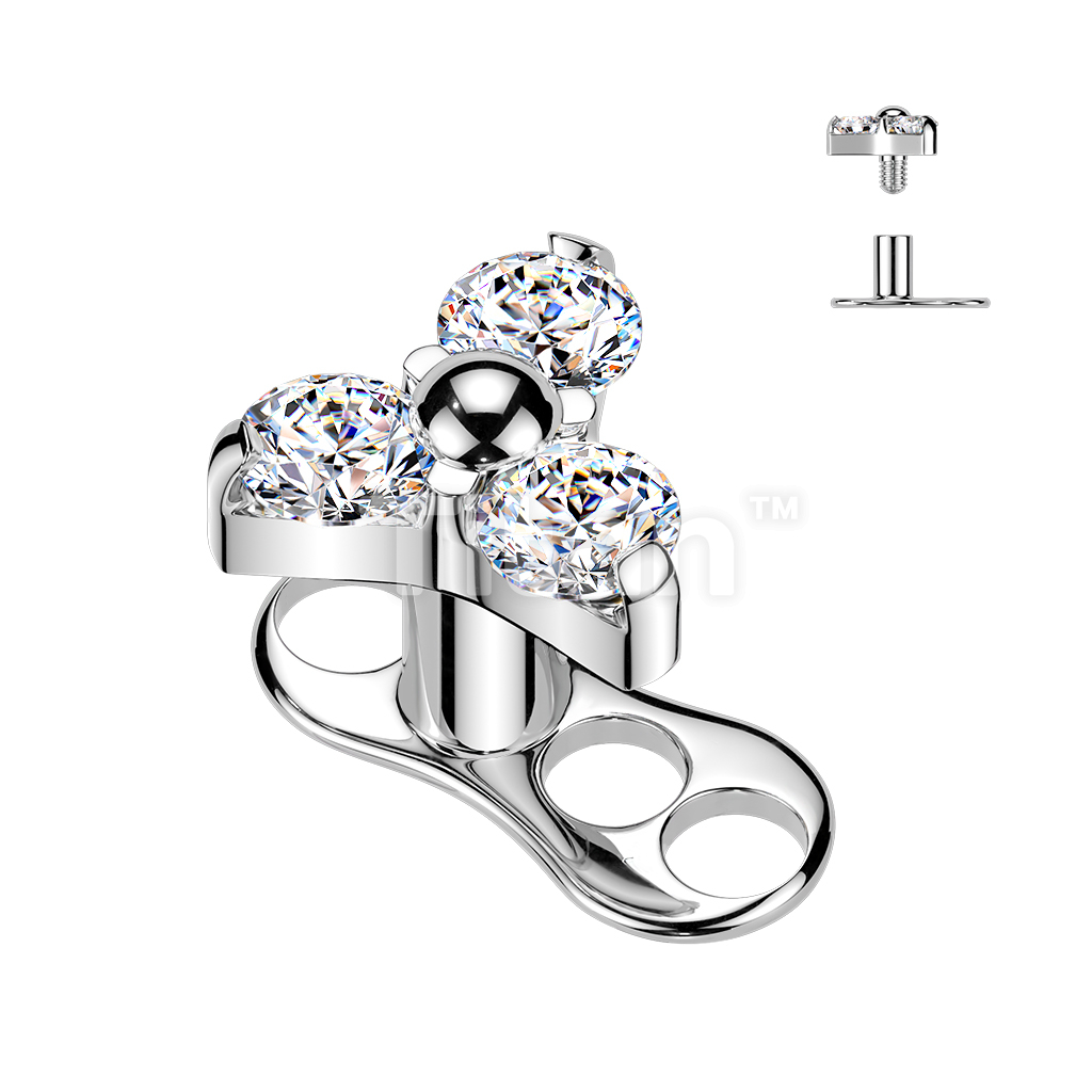 Titanium Internally Threaded 3 Hole Dermal Anchor With CZ Triangle Top
