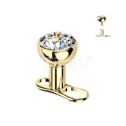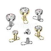 Titanium Internally Threaded 2 Hole Dermal Anchor With Bezel Set CZ Top