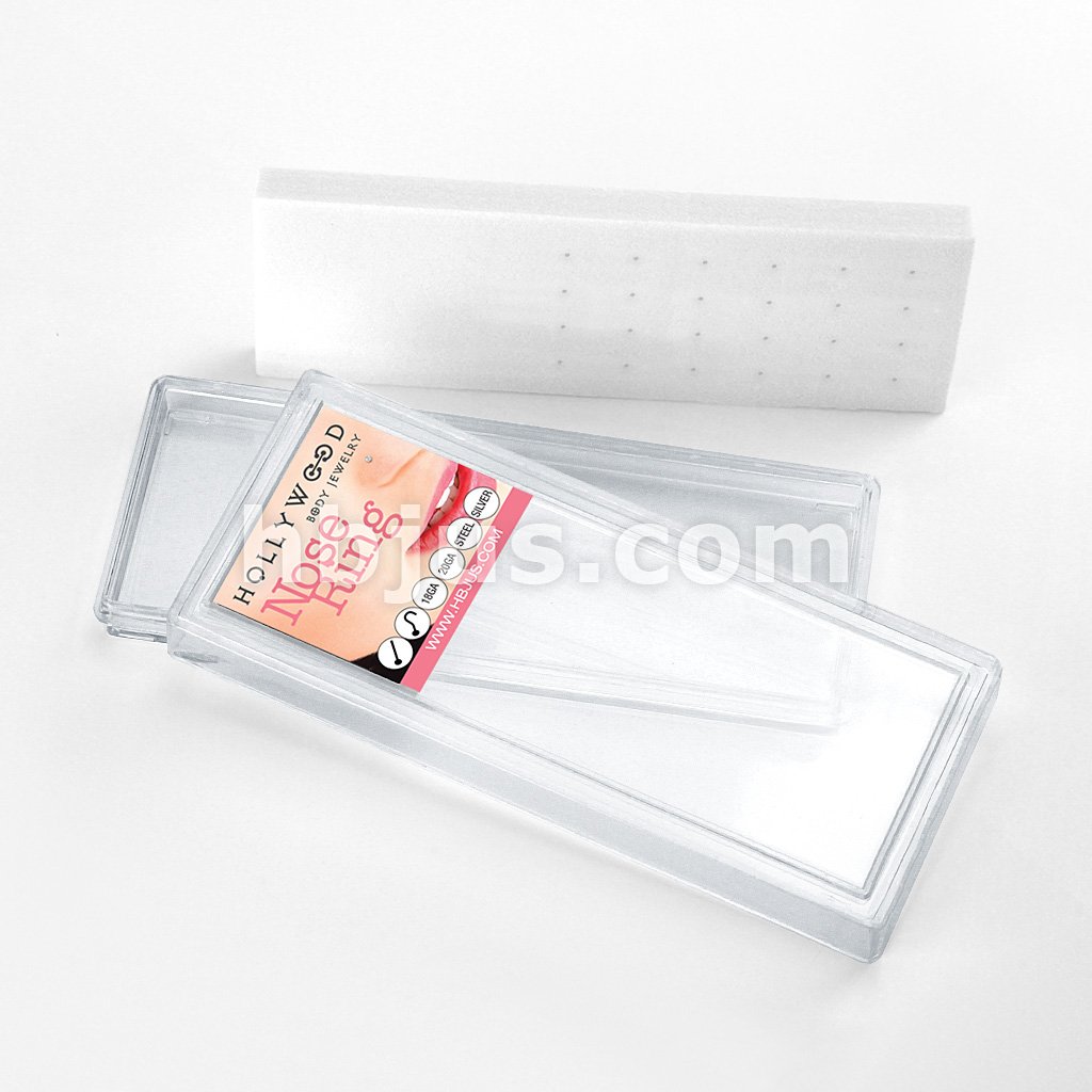 2"x4.75" CLEAR GEMBOX WITH WHITE VELVET INSERT. HOLDS 24PCS of NOSERINGS