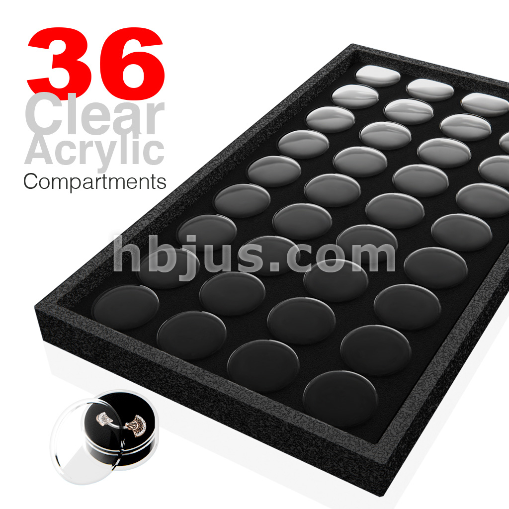 36 Slotted Removable Acrylic Jars with Velvet Insert Tray