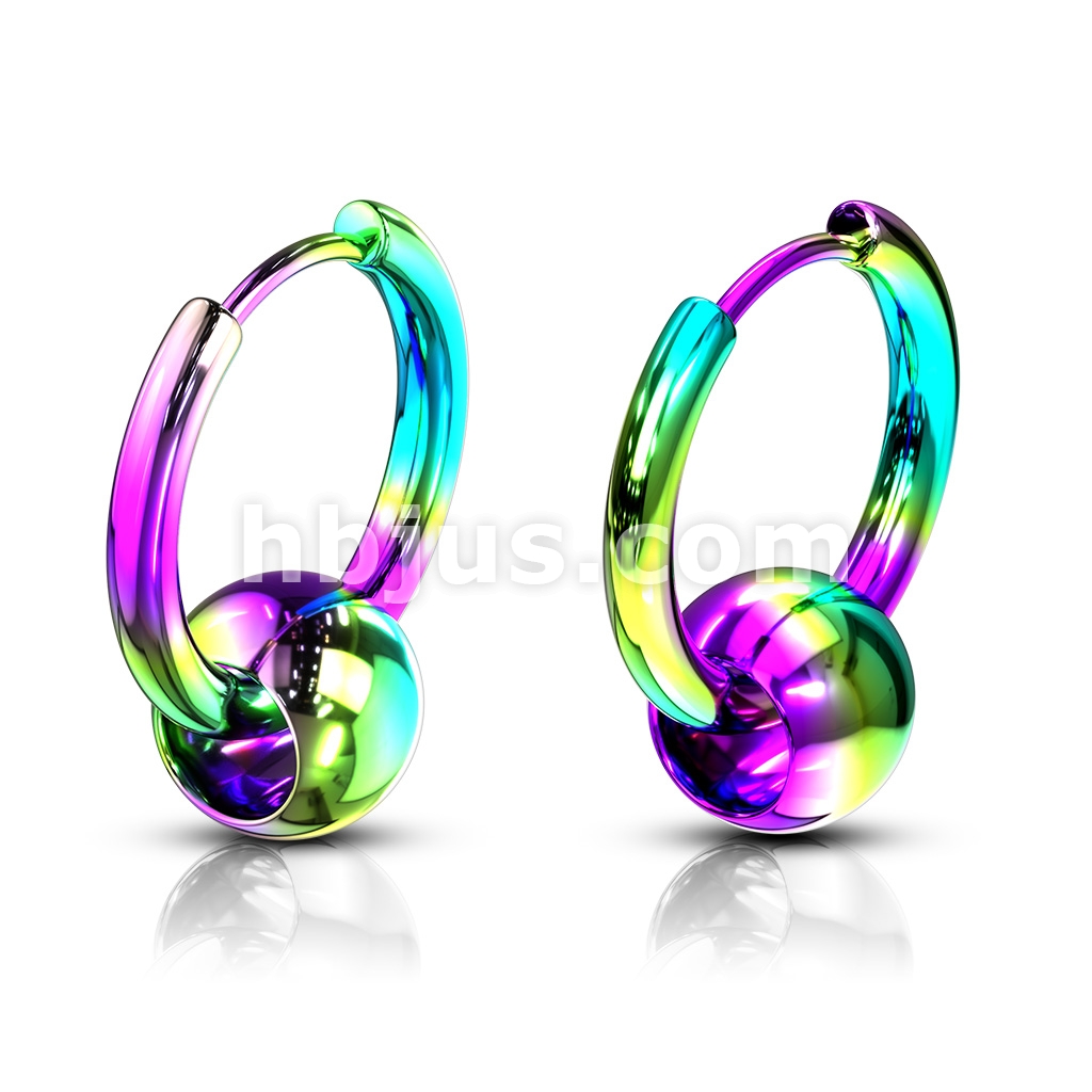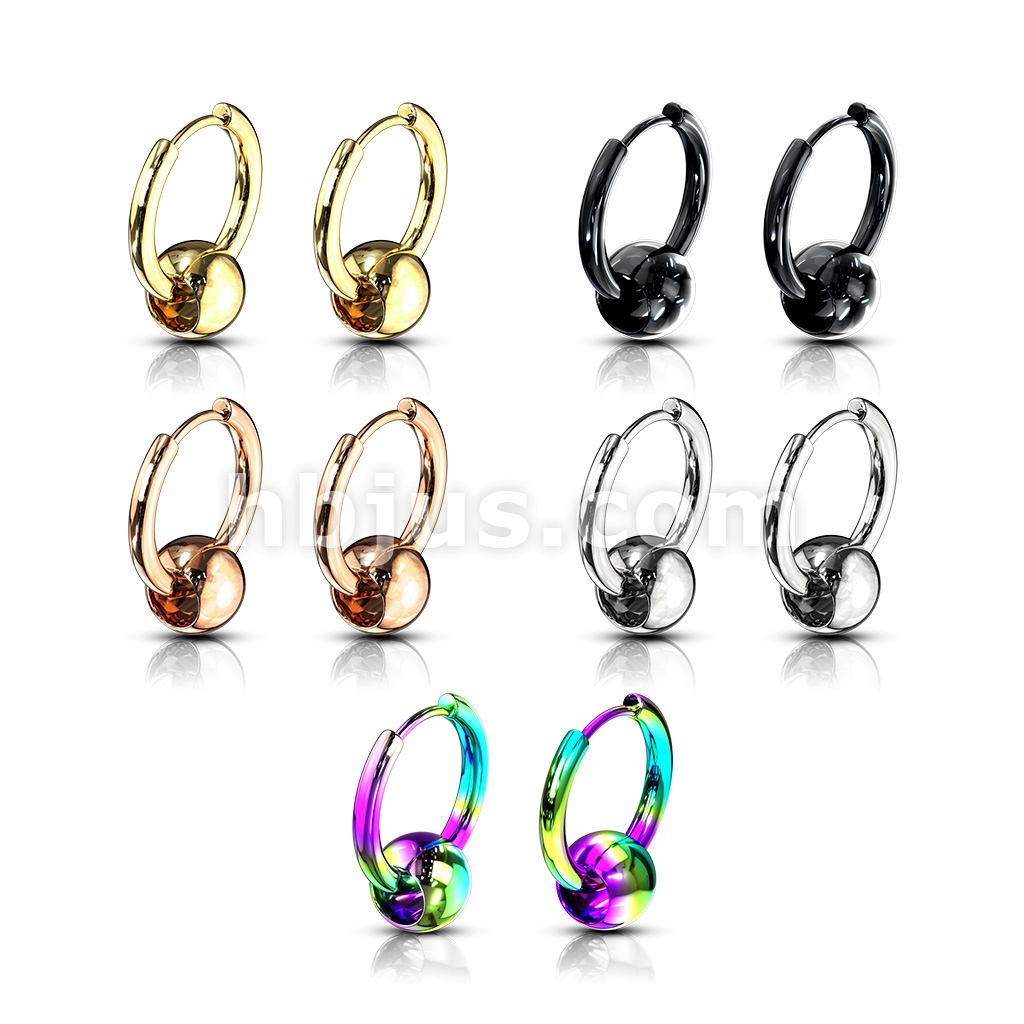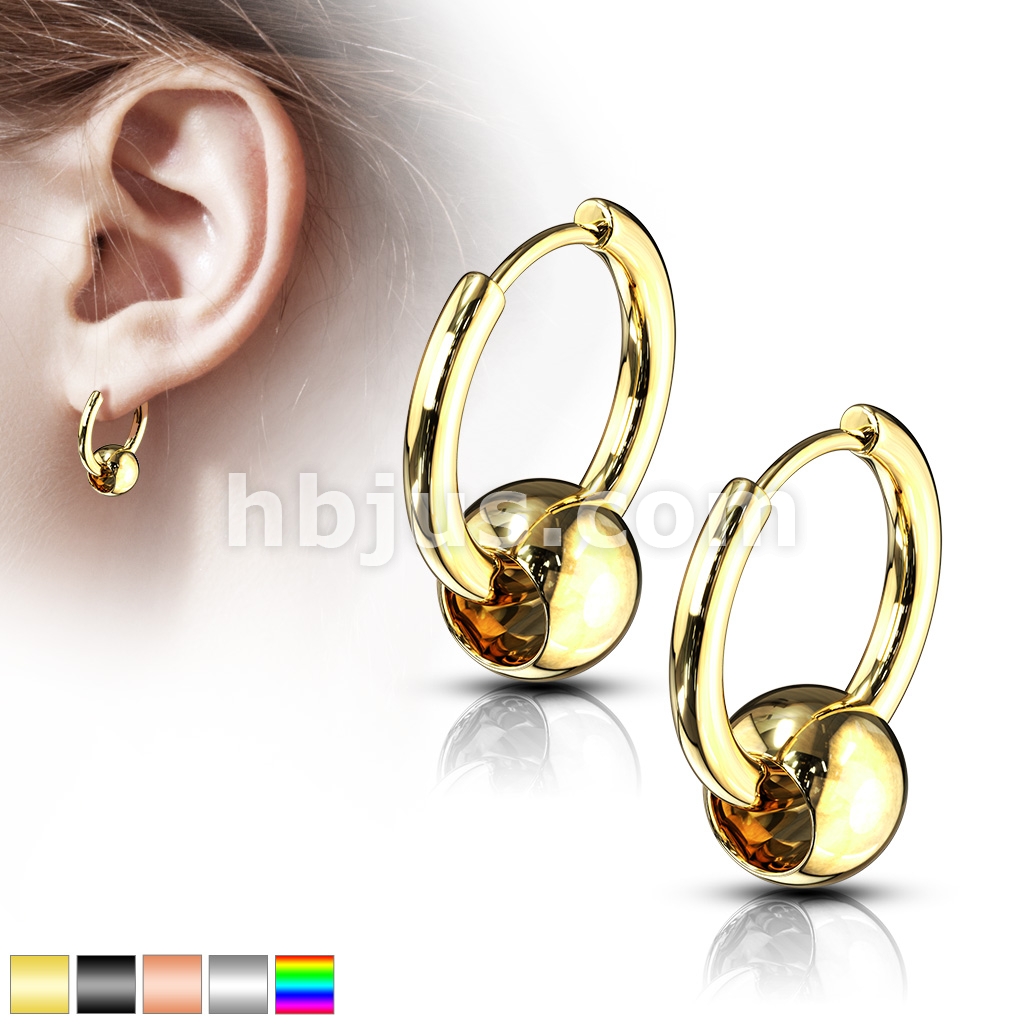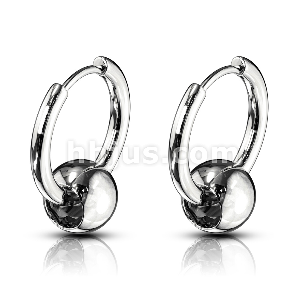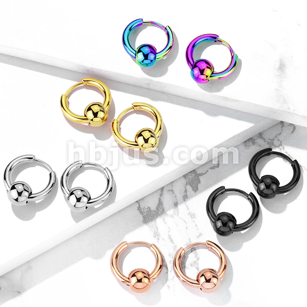 Pair of Captive Ball 316L Stainless Steel Hinge Action Seamless Hoop Earrings