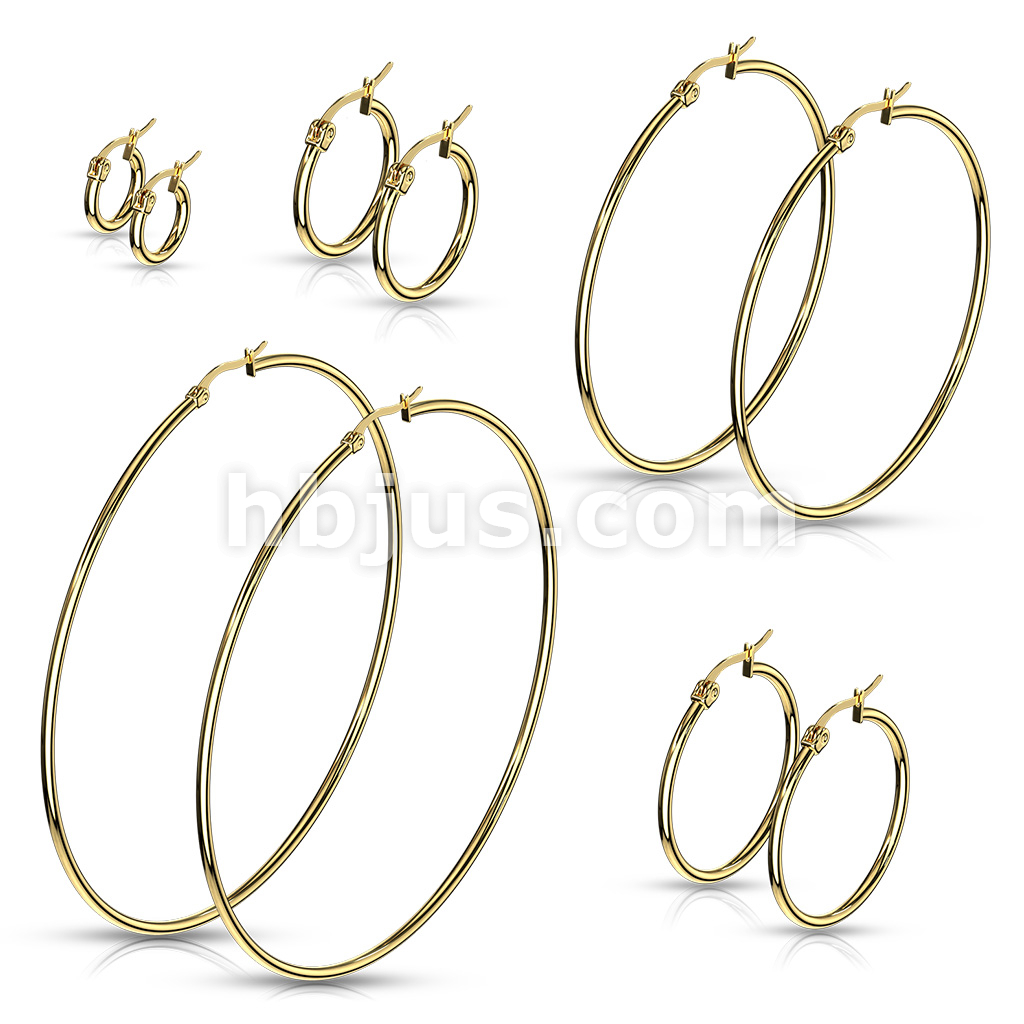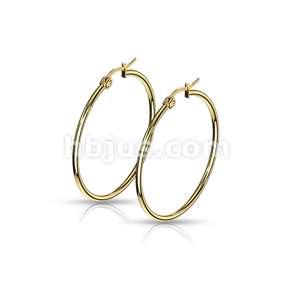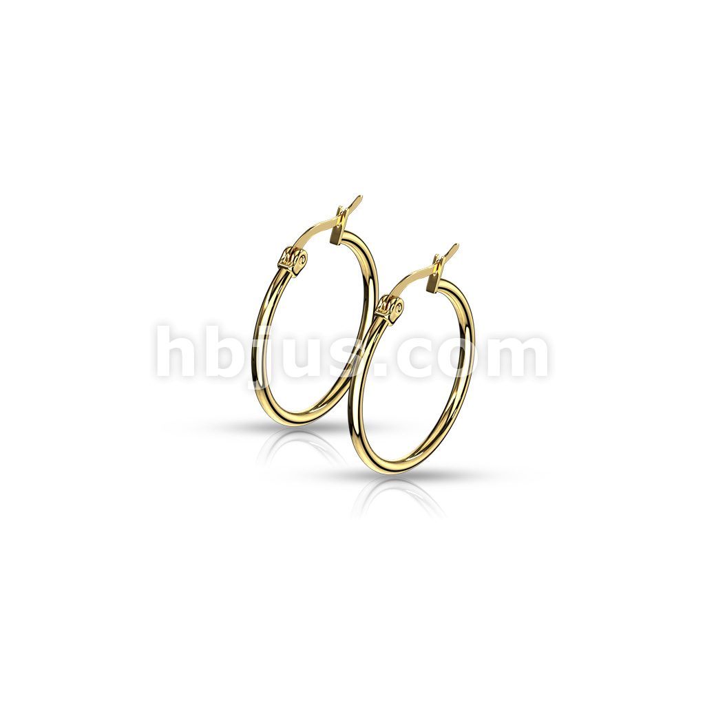 Pair of Gold IP 316L Stainless Steel Round Hoop Earrings
