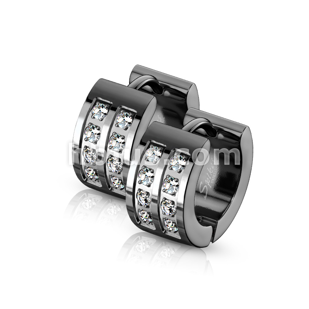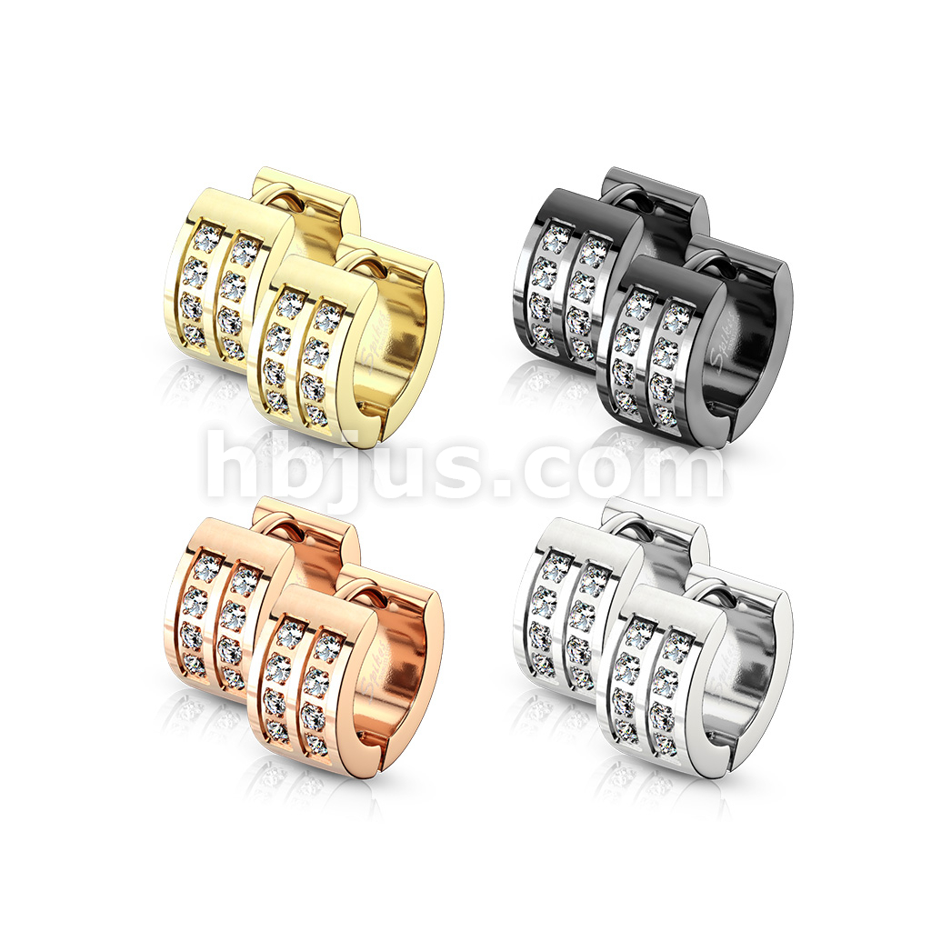 Pair of 8 CNC Set Clear CZ Stainless Steel Hinge Action Hoop Earrings
