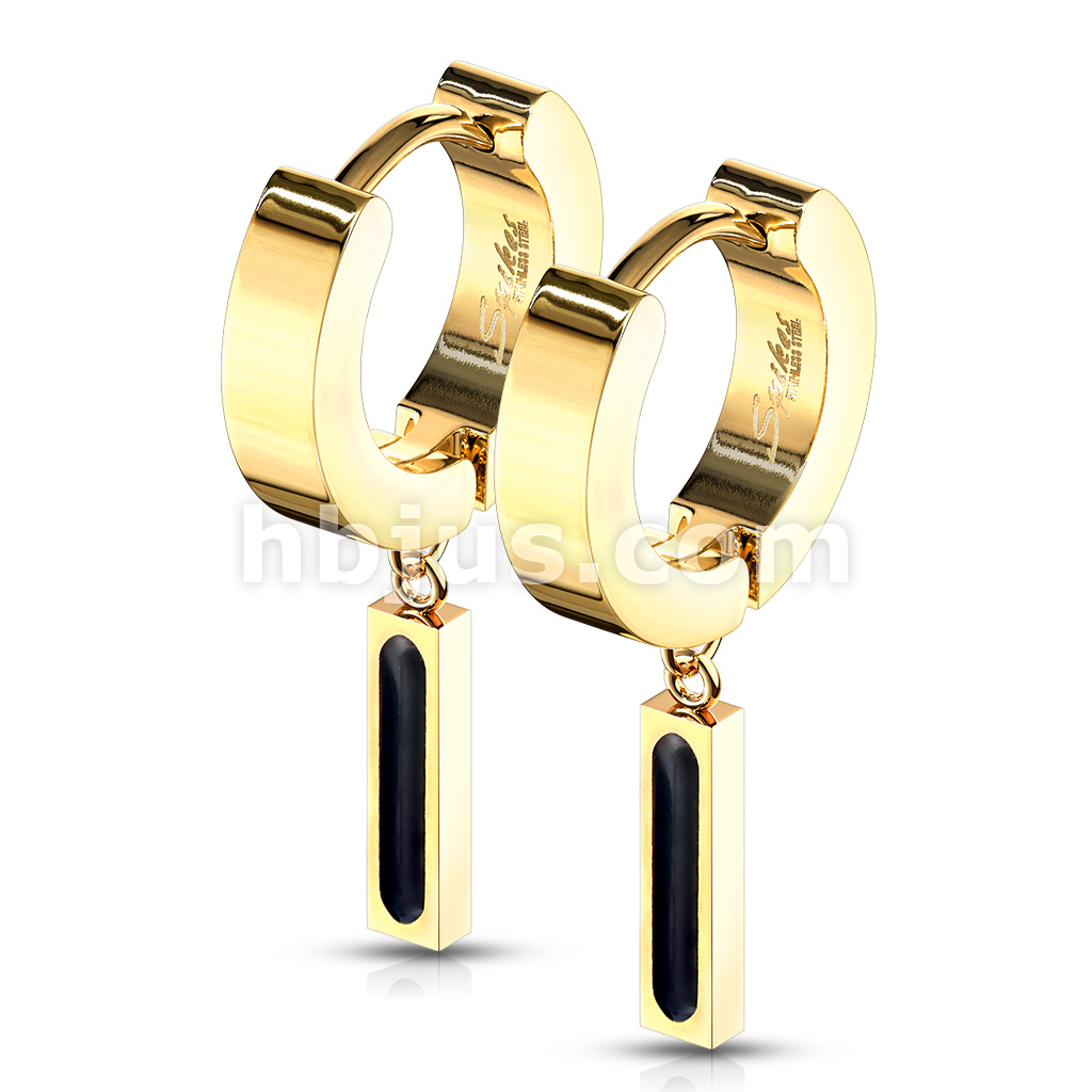 Pair of 316L Stainless Steel Hinged Hoop Earring and Rectangular Bar with Black IP Center Dangle