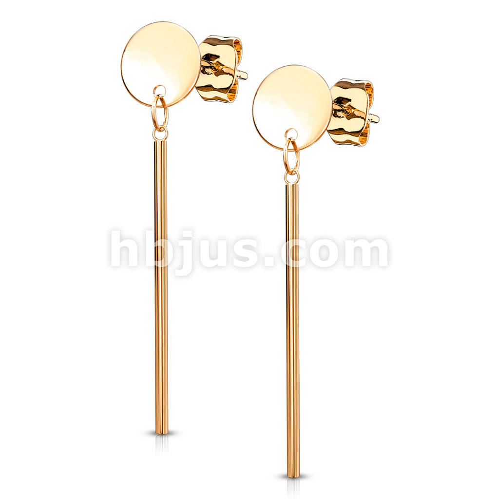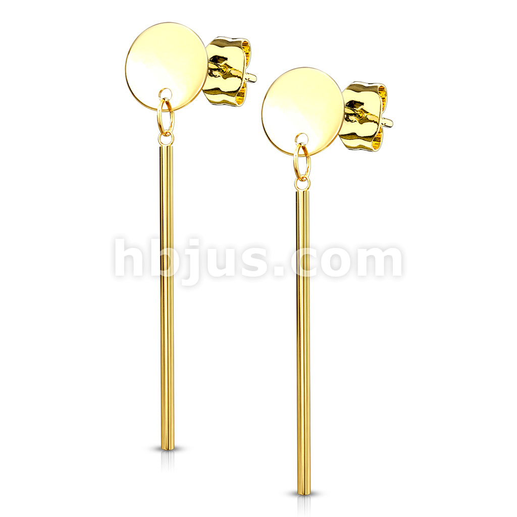 Pair of Round Plate with Dangling Bar 316L Stainless Steel Stud Earrings
