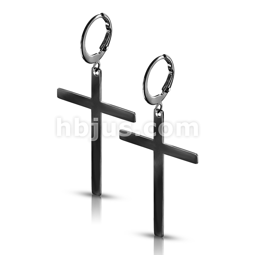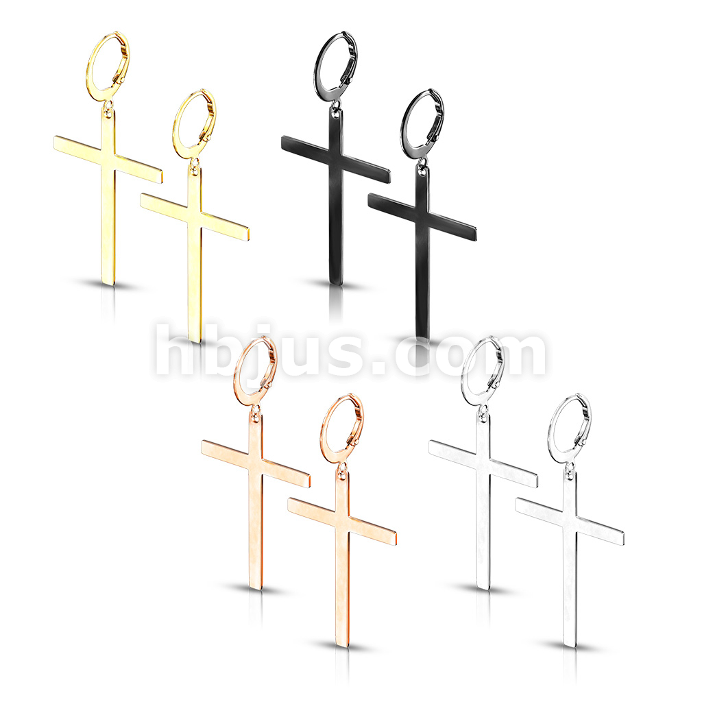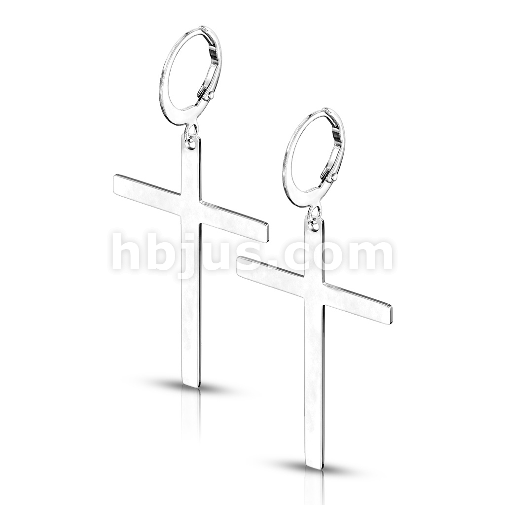 Pair of 316L Stainless Steel Hoop Earrings With Cross Dangle