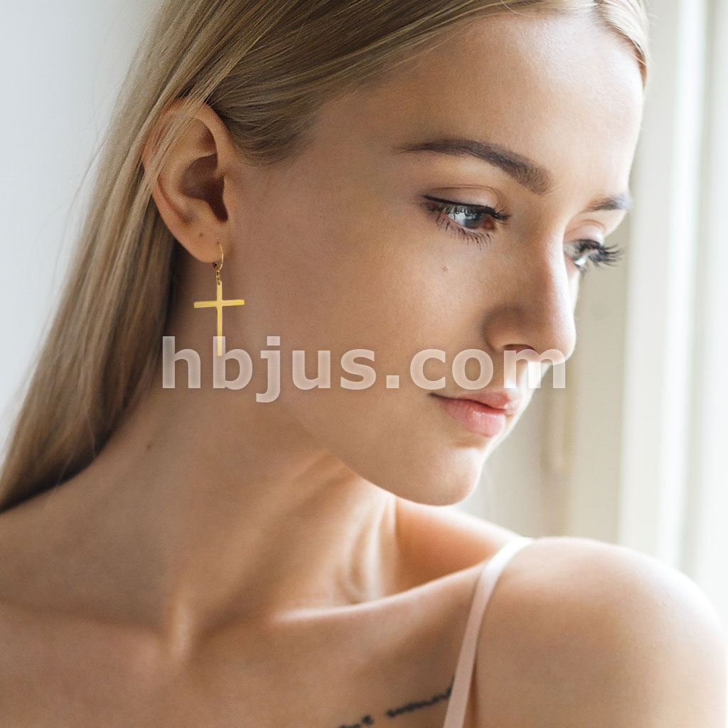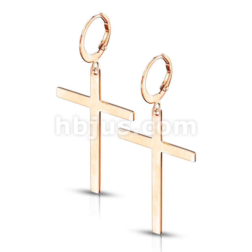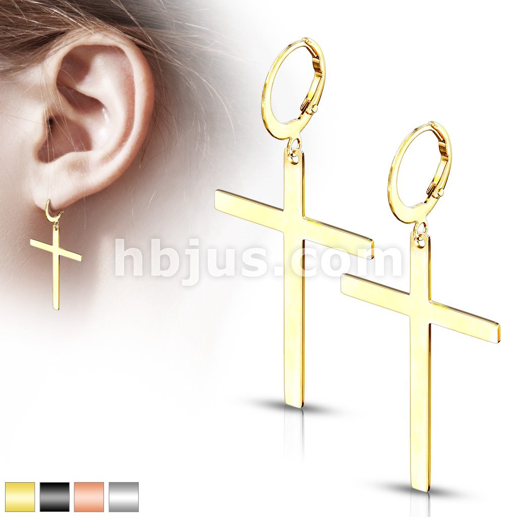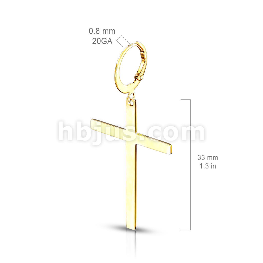 Pair of 316L Stainless Steel Hoop Earrings With Cross Dangle