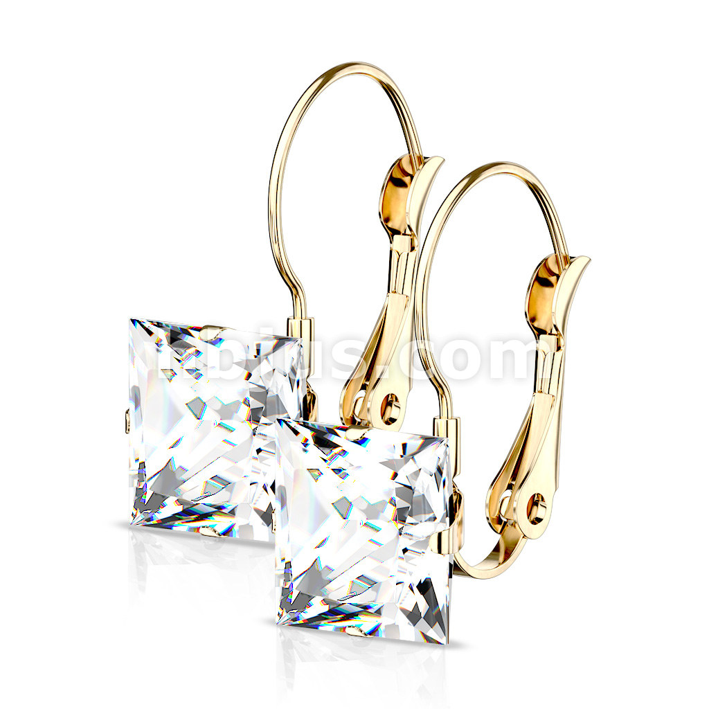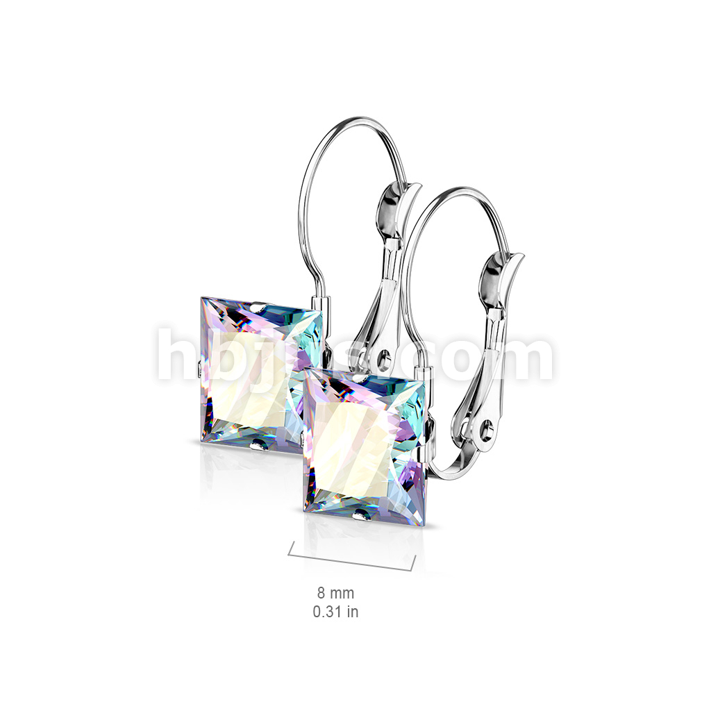 Pair of Square CZ with Lever Back 316L Stainless Steel Earrings