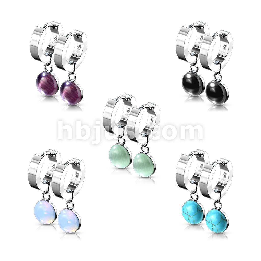 Pair of 316L Stainless Steel Hinged Hoop Earrings with Semi Precious Stone Dangle