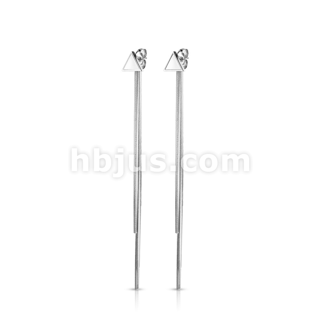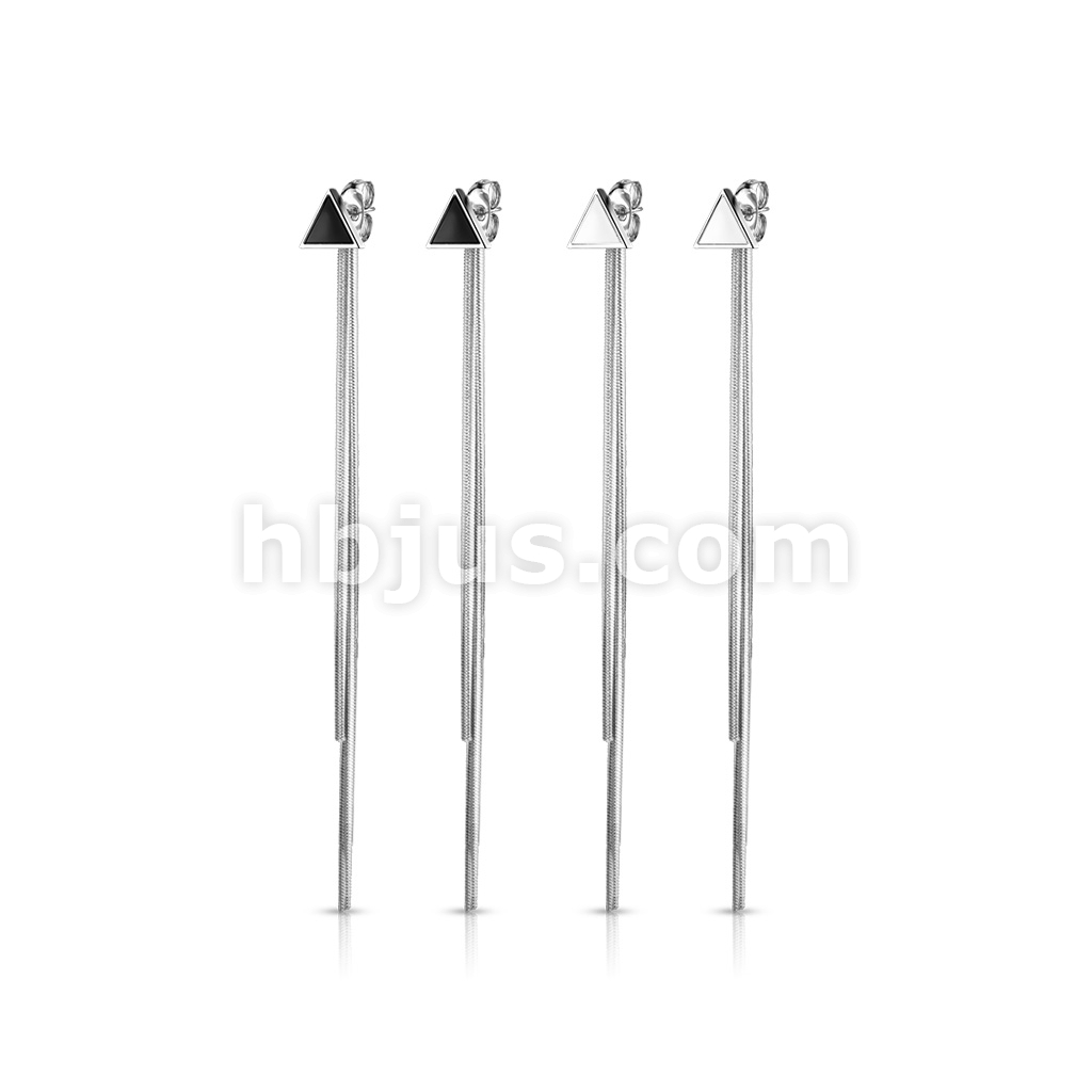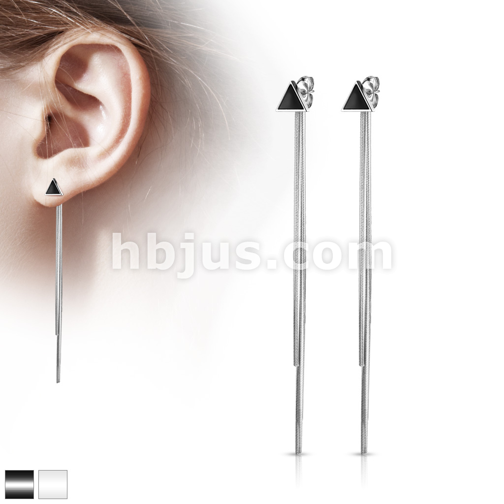 Pair of Enamel Filled Triangle 316L Stainless Steel Stud Earrings with Chain Dangles on Butterfly Clasp