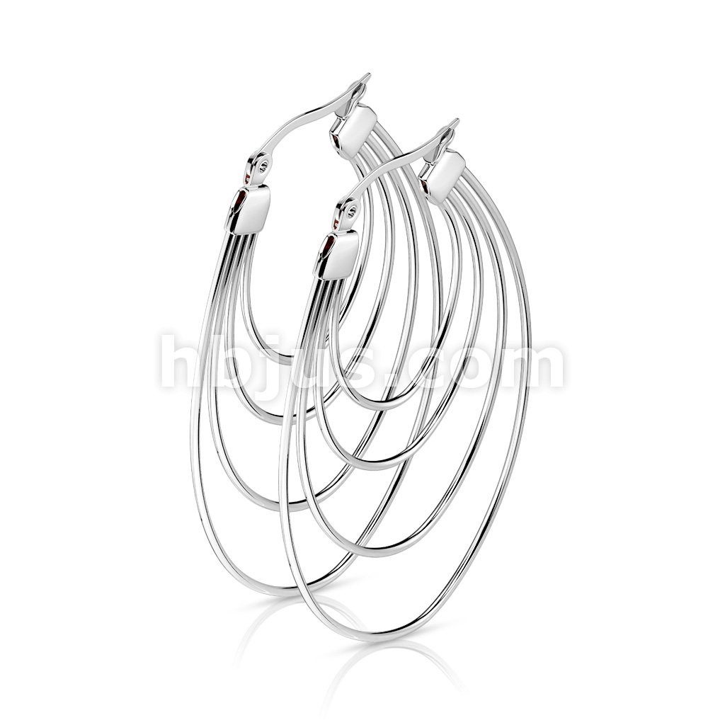 Pair of Quadruple Layered Ovals 316L Stainless Steel Hoop Earrings