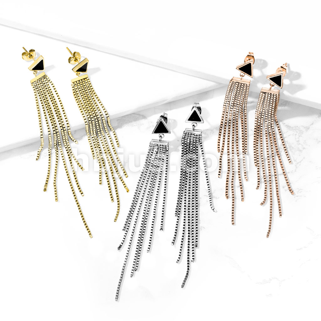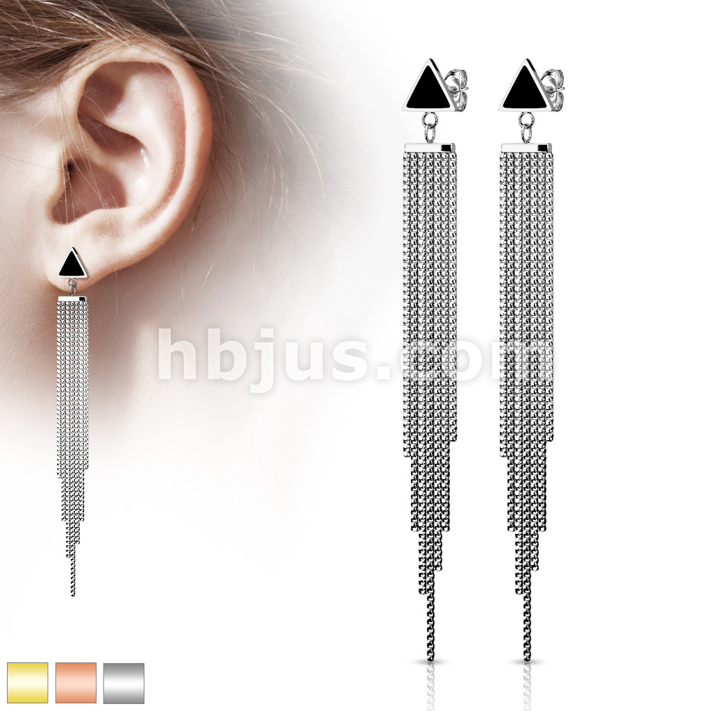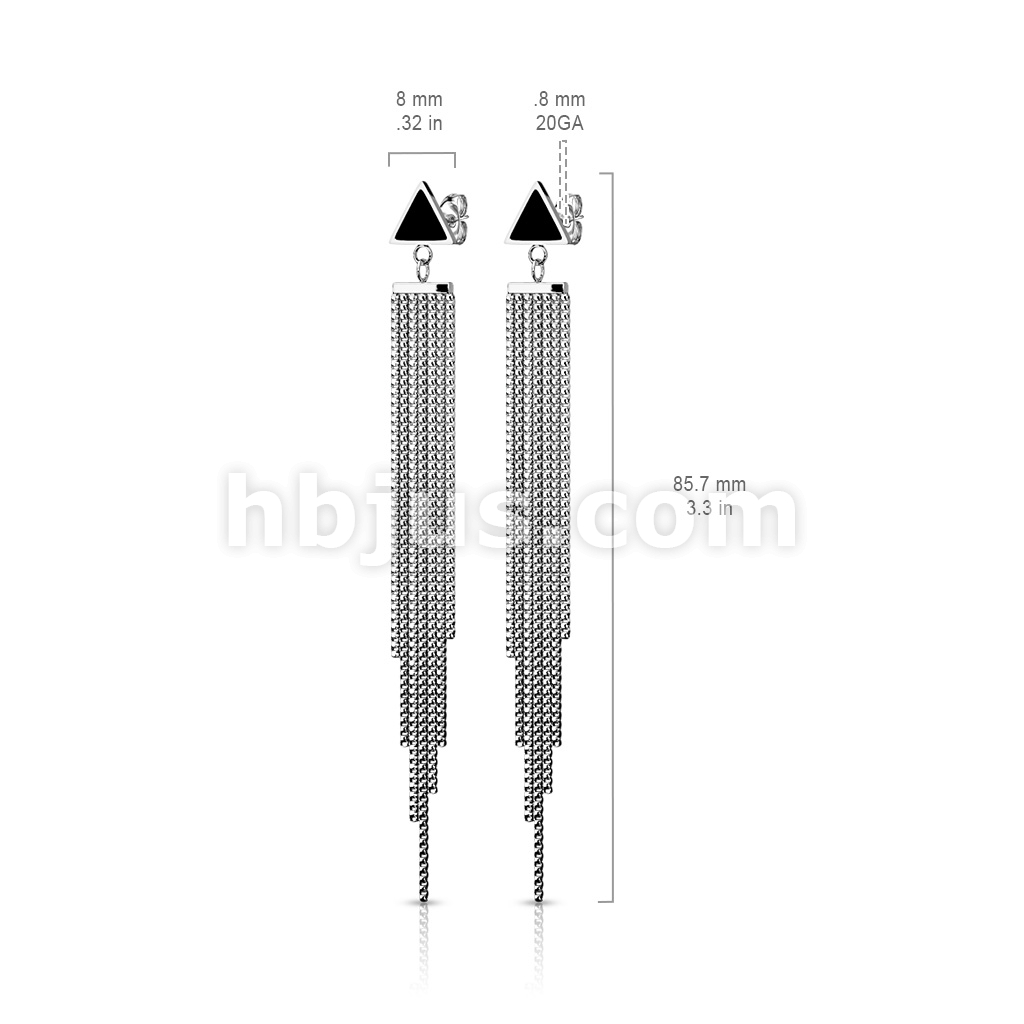 Pair of Enamel Filled Triangle with Shield Chain Dangle 316L Stainless Steel Stud Earrings