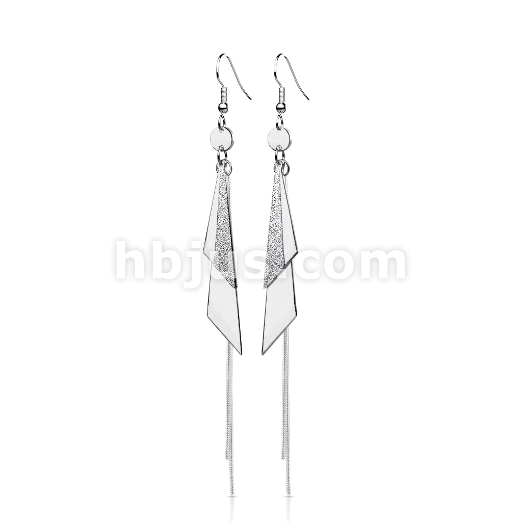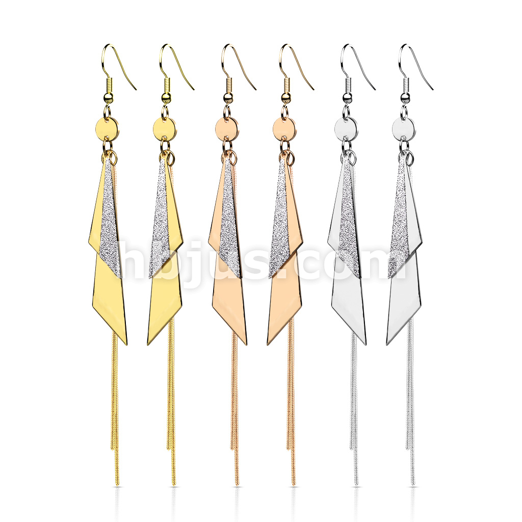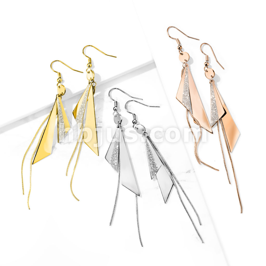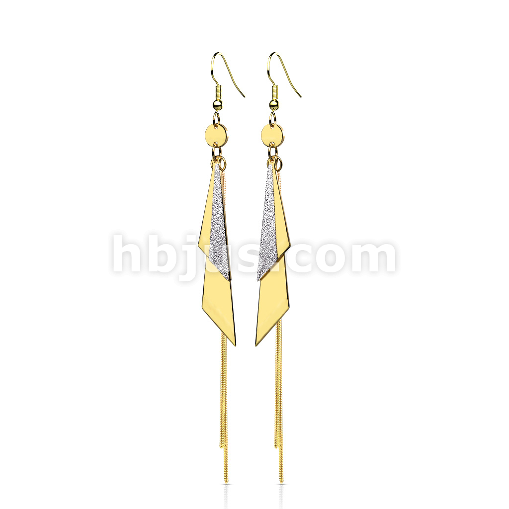 Pair of One and Two Tone Triangles and Chain Dangle 316L Stainless Steel Hook Earrings